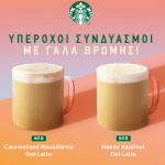 Νέο Honey & Hazelnut Oat Latte: Απαλές νότες μελιού, γίνονται ένα με τον έντονο Signature Espresso Roast, την καβουρδισμένη γεύση φουντουκιού και το κρεμώδες γάλα βρώμης. Το νέο latte των Starbucks, θα σας συντροφεύσει κάθε ώρα της ημέρας και θα απογειώσει γευστικά κάθε σας στιγμή με την υπέροχη απαλή γεύση του και το γλυκό topping από μέλι.