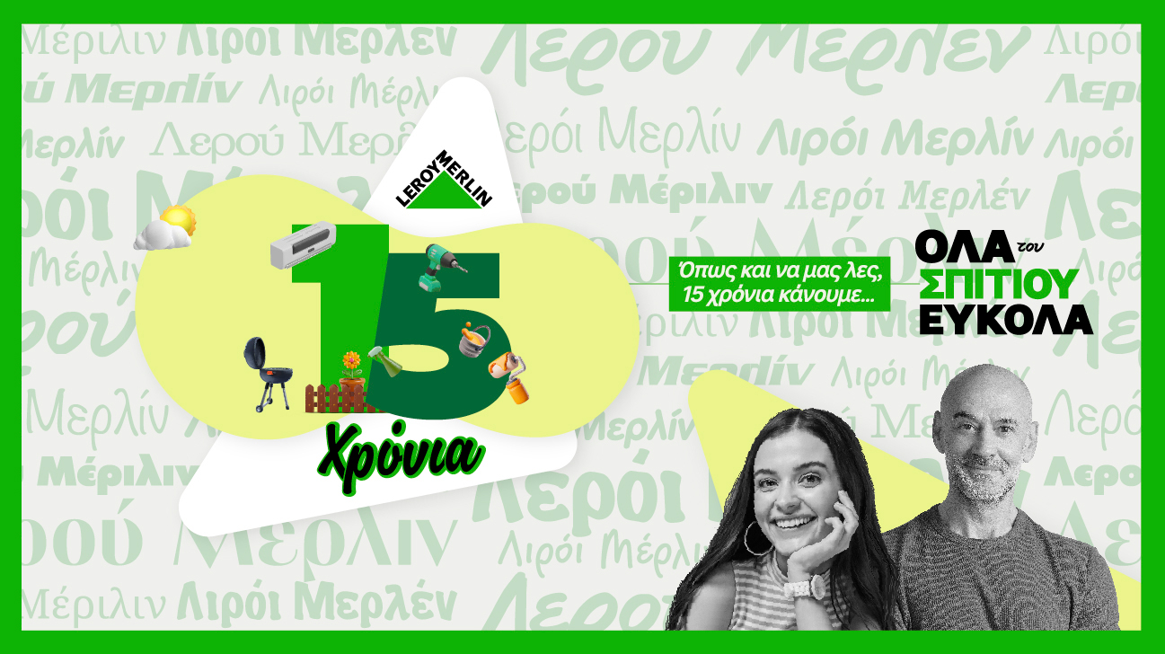 Η LEROY MERLIN γιορτάζει 15 χρόνια συνεχούς παρουσίας στην Κύπρο, μένοντας σταθερά δίπλα στους καταναλωτές με ένα ξεκάθαρο όραμα: να βοηθά κάθε άνθρωπο να δημιουργήσει το σπίτι που αγαπά να ζει. Μετατρέποντας κάθε ανακαίνιση ή αλλαγή στο σπίτι σε μια εύκολη, προσιτή και εμπνευστική εμπειρία, η εταιρεία συνεχίζει να γράφει τη δική της ιστορία στο χώρο της κατοικίας.