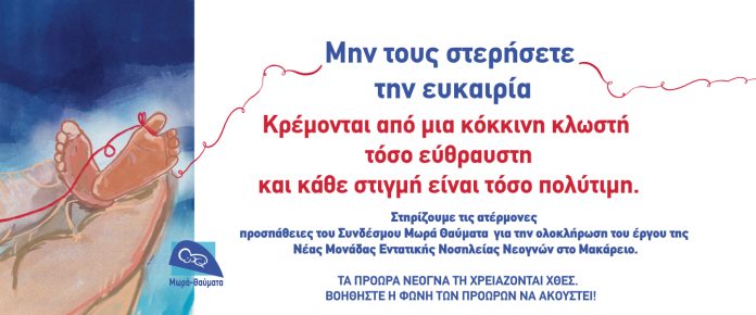 Σε ολόκληρο τον κόσμο, καταβάλλεται κάθε δυνατή προσπάθεια ώστε τα πρόωρα μωρά να έχουν πρόσβαση στην καλύτερη δυνατή ιατρική και οικογενειοκεντρική φροντίδα. Στη χώρα μας, ο Σύνδεσμος «Μωρά Θαύματα», για δέκα συνεχή χρόνια, αγωνίζεται για να κάνει τον κόσμο τους καλύτερο — να δημιουργήσει ένα φωτεινότερο μέλλον για τα πρόωρα νεογνά μέσα στη ΜΕΝΝ, αλλά και στη συνέχεια της ζωής τους, ιδιαίτερα για τα παιδιά που αντιμετωπίζουν θέματα υγείας λόγω της προωρότητας.