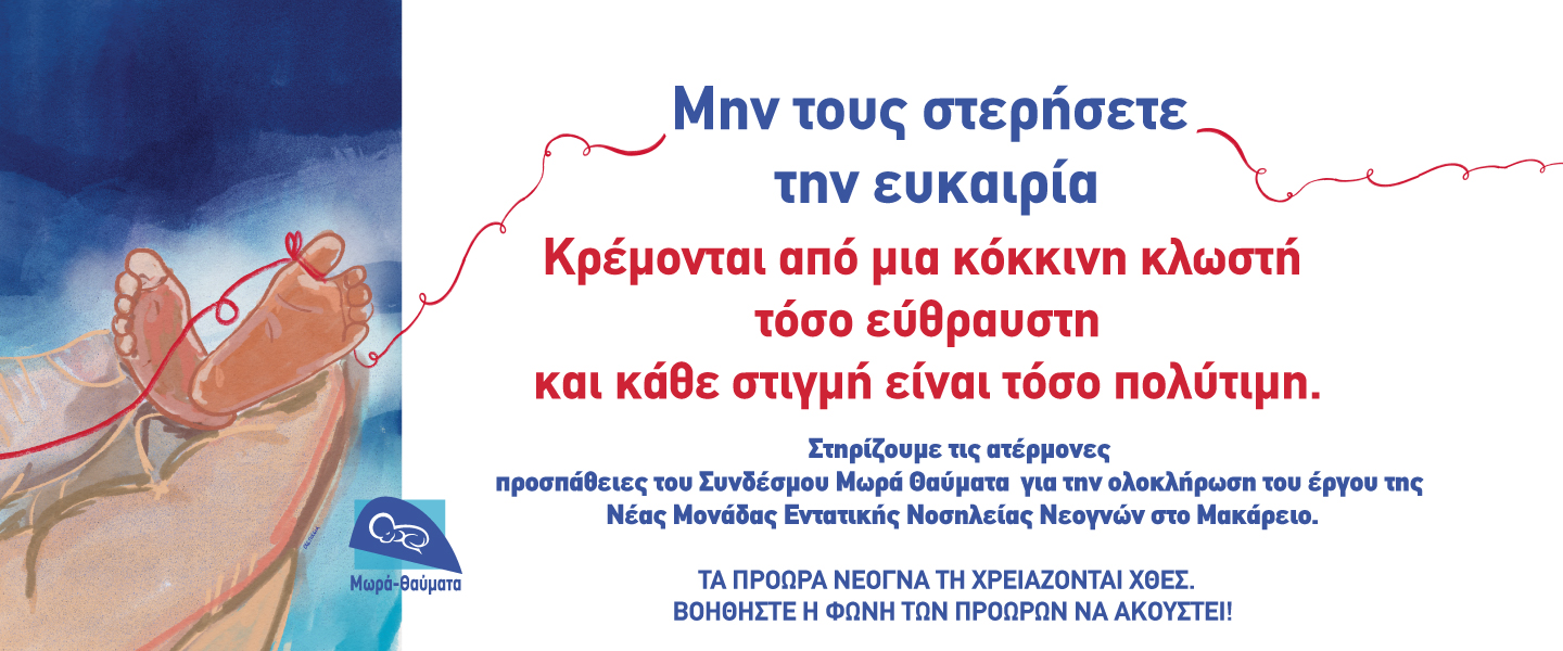 Φέτος, ο Σύνδεσμος «Μωρά Θαύματα» τιμά τα πρόωρα μωρά με σιωπή και αποχή από εκδηλώσεις επιλέγοντας η φετινή σιωπή του να αποτελέσει ένδειξη διαμαρτυρίας για τη στασιμότητα της ανέγερσης της νέας Μονάδας Εντατικής Νοσηλείας Νεογνών.