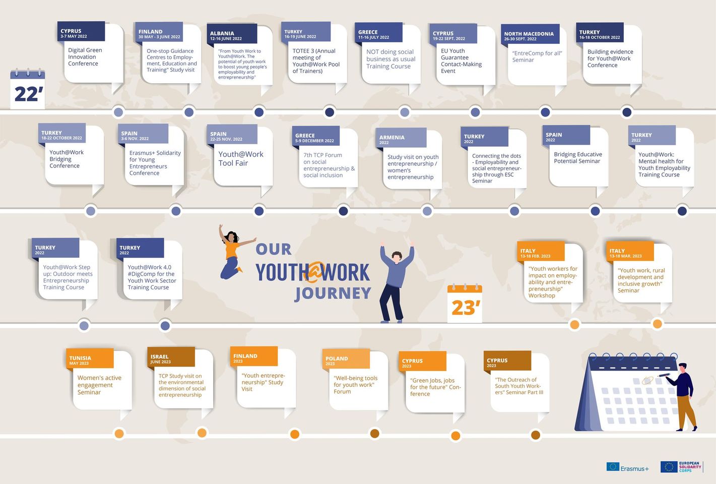 Το 2022 (και λίγο το 2023) θα είναι γεμάτο από δραστηριότητες Youth @ Work σχετικά με την απασχολησιμότητα και την επιχειρηματικότητα των νέων, νέους ανθρώπους, νέες εμπειρίες και νέες ιδέες!
