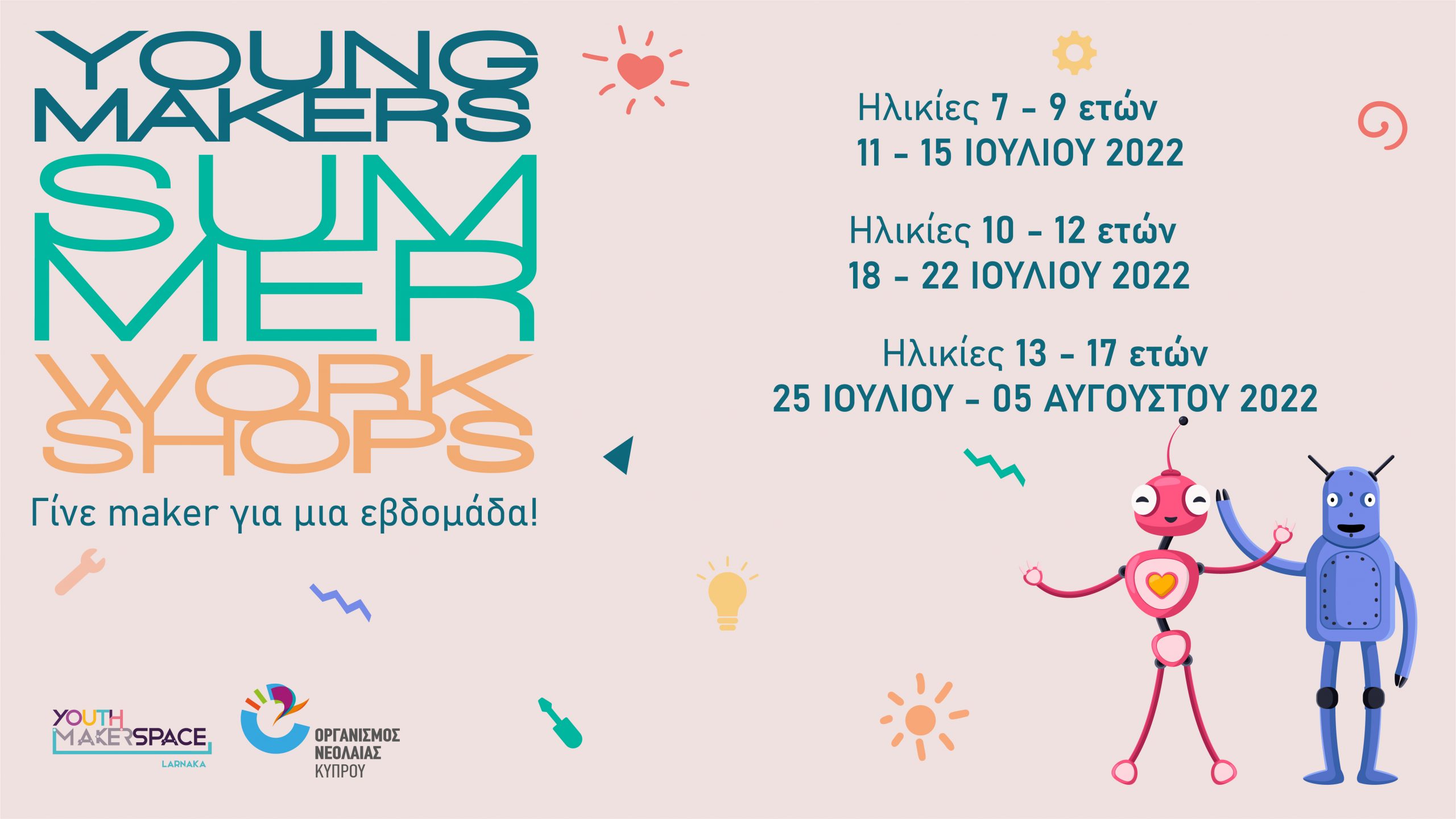 H νέα καλοκαιρινή δράση του Youth Makerspace Larnaka του ONEK, για παιδιά από 7-17 ετών, έχει ως στόχο την εκμάθηση των απαραίτητων δεξιοτήτων του 21ου αιώνα. Όσα παιδιά λάβουν μέρος θα έχουν την ευκαιρία παρακολουθήσουν τεχνολογικά εργαστήρια και να απασχοληθούν με διάφορες δραστηριότητες οι οποίες συσχετίζονται με τον τομέα STEAM, όπως 3D printing, laser cutting, Virtual Reality, Arduinos, ρομποτική κ.ά. Τα Young Makers Summer Workshops χωρίζονται ηλικιακά ως εξής:
