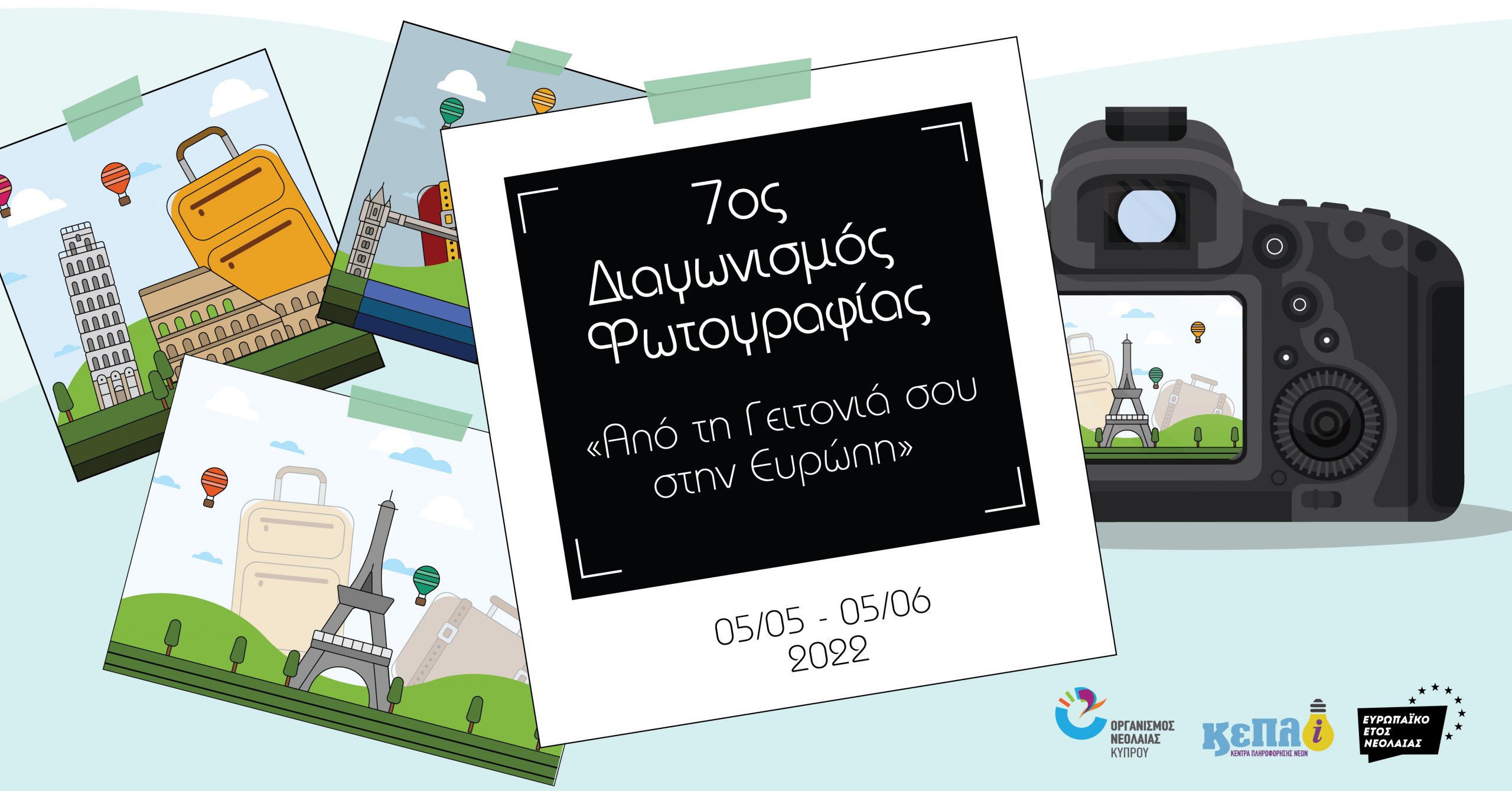 Ο Οργανισμός Νεολαίας Κύπρου προκηρύσσει τον 7ο διαγωνισμό φωτογραφίας με θέμα «Από τη γειτονιά σου στην Ευρώπη», ο οποίος θα έχει ισχύ από τις 5 Μαΐου μέχρι και τις 5 Ιουνίου 2022. Ο διαγωνισμός πραγματοποιείται στο πλαίσιο του Ευρωπαϊκού Έτους Νεολαίας 2022, που έχει στόχο να αναδείξει τη συμμετοχή της ευρωπαϊκής νεολαίας για την οικοδόμηση ενός καλύτερου μέλλοντος.