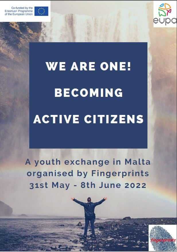 Πρόσκληση για 5 νέους (18-30 ετών) και έναν ηγέτη (18+) για το έργο «We are One» που θα πραγματοποιηθεί στη Μάλτα. Θέμα: Αλληλεγγύη και υπαίθριες δραστηριότητες. Οι δραστηριότητες θα υλοποιηθούν σε εξωτερικό χώρο σε κάμπινγκ. Πακέτο πληροφοριών σύντομα.