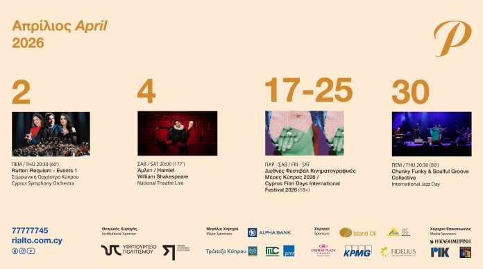Το Θέατρο Ριάλτο ανακοινώνει το πρόγραμμα του για τον μήνα Απρίλιο.