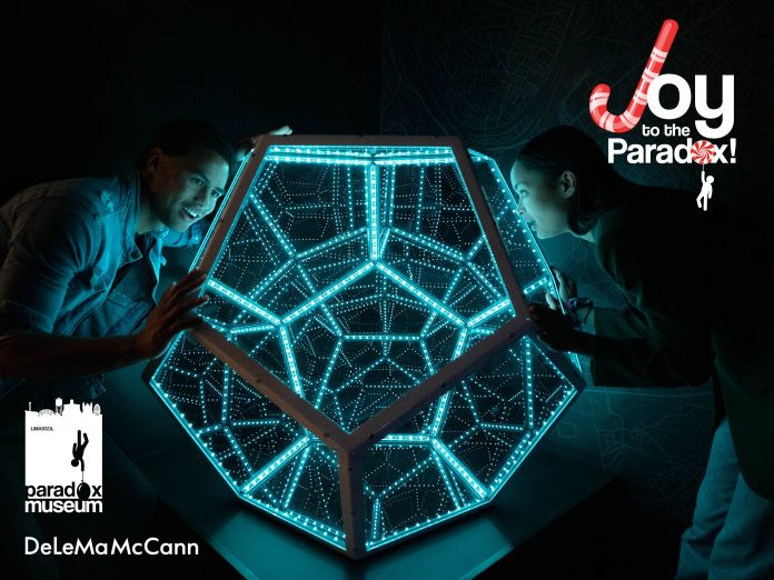 Η συνεργασία των DeLeMa McCann Κύπρου και Paradox Museum Limassol δυο δυναμικών εταιρειών που δεν φοβούνται την πρόκληση, οδήγησε στη δημιουργία του video ‘Joy to the Paradox’, που καλωσορίζει τους followers του μουσείου στον παράδοξο κόσμο του, προσαρμοσμένο ειδικά για τις ημέρες των γιορτών, με την ανάμειξη των ψυχεδελικών κυκλικών σχεδίων και των χριστουγεννιάτικων στολιδιών.
