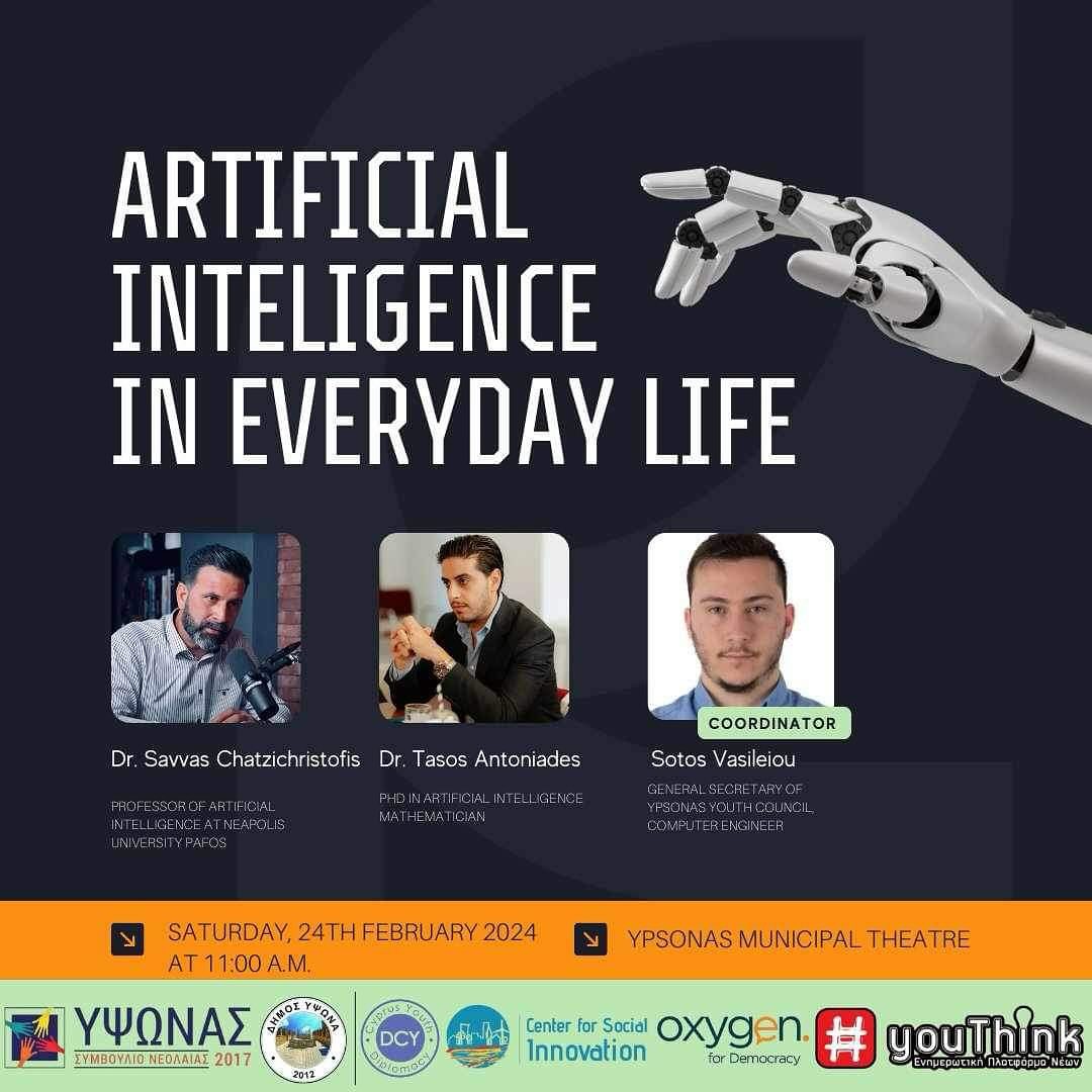 Σας προσκαλούμε στην εκδήλωσή μας με τίτλο «Η Τεχνητή Νοημοσύνη στην Καθημερινότητά μας» το Σάββατο 24 Φεβρουαρίου στις 11:00 π.μ. στο Δημοτικό Θέατρο Ύψωνα.