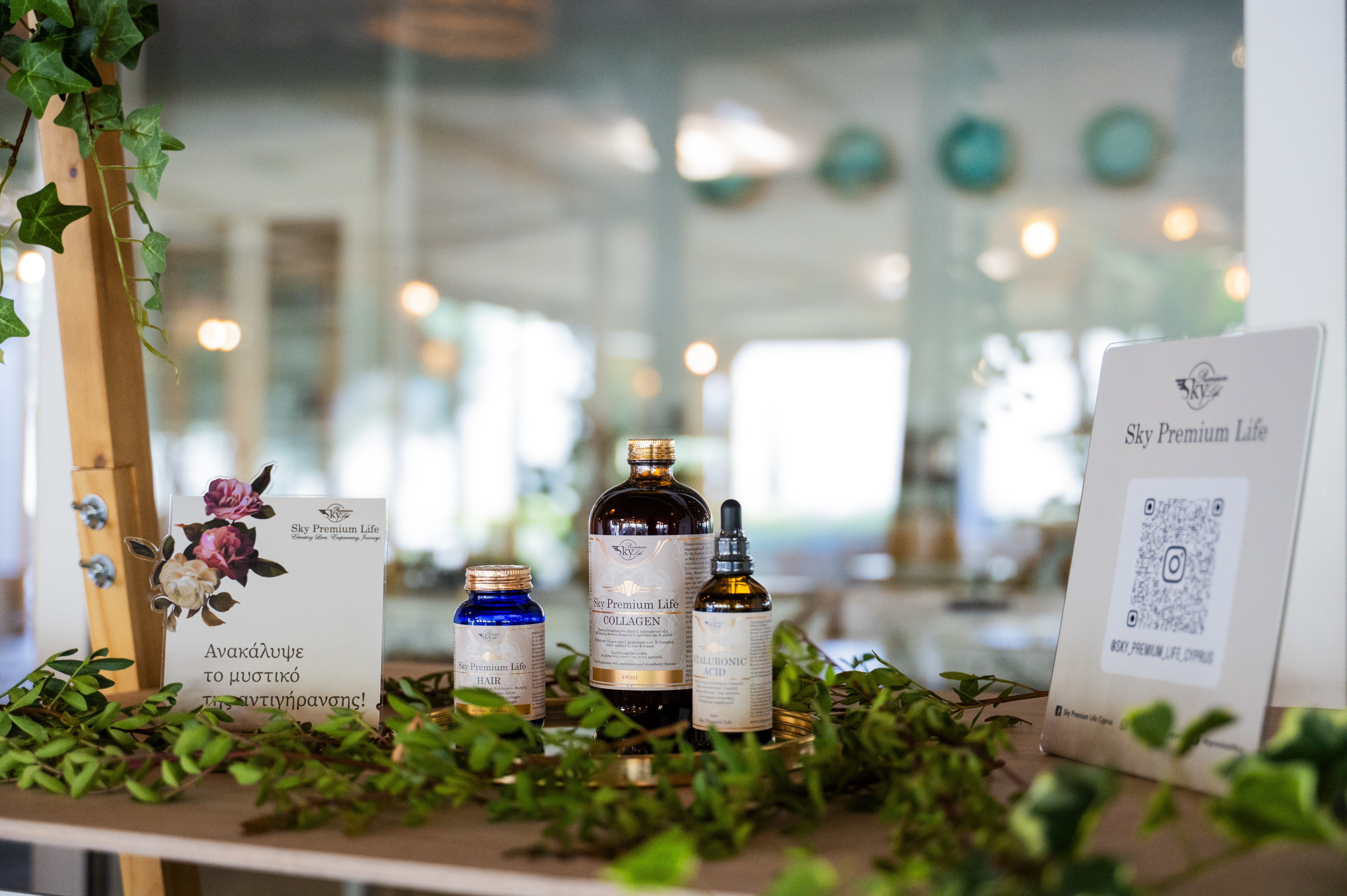 Στο ειδικά διαμορφωμένο Wellness Corner, οι καλεσμένοι ενημερώθηκαν για τα συμπληρώματα διατροφής της Sky Premium Life και είχαν την ευκαιρία να δοκιμάσουν τα προϊόντα σε μια ολιστική εμπειρία ευεξίας.