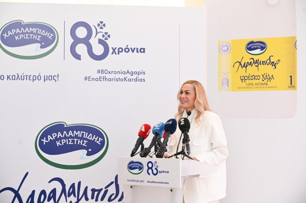 Η Marketing and Corporate Image Manager, Σωτηρούλα Σωτηρίου, ανακοίνωσε με ιδιαίτερη συγκίνηση την επιστροφή της υπογραφής εμπιστοσύνης «Χαραλαμπίδης» στο Φρέσκο Κυπριακό μας γάλα. «Είναι μία απόφαση ιδιαίτερου συμβολισμού και αγάπης προς όλες τις Κύπριες και τους Κύπριους που μας επιλέγουν, μας εμπιστεύονται και μας αγκαλιάζουν 80 χρόνια τώρα», είπε η κα Σωτηρίου, τονίζοντας πως «οι οκτώ δεκαετίες που έχουμε διανύσει δεν είναι απλά αριθμός, είναι μια κοινή διαδρομή ζωής, εμπιστοσύνης και αγάπης, που μας οδηγεί να εξελισσόμαστε χάρη στη βαθιά και αδιάρρηκτη σύνδεσή μας με το καταναλωτικό κοινό, τους ανθρώπους του τόπου μας».