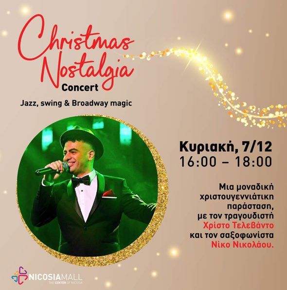 Ο Χρίστος Τελεβάντος παρουσιάζει τη νέα υποσχόμενη Συναυλία του με τίτλο “Christmas Nostalgia Concert: Jazz, Swing & Broadway Magic” που θα διεξαχθεί την Κυριακή, 7 Δεκεμβρίου, από 4 έως 6 μ.μ., στο Nicosia Mall.