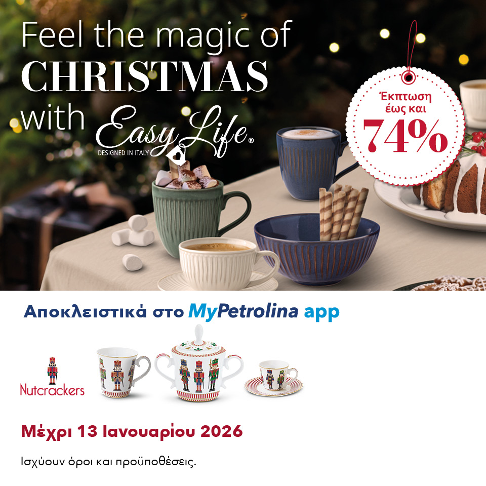 Η Πετρολίνα καλωσορίζει τη φετινή εορταστική περίοδο με ένα νέο πρόγραμμα πιστότητας μικρής διάρκειας, προσφέροντας στους καταναλωτές τη δυνατότητα να αποκτήσουν μοναδικά προϊόντα σερβιρίσματος από της συλλογές Easy Life Gallery και Nutcrackers σε προνομιακές τιμές.