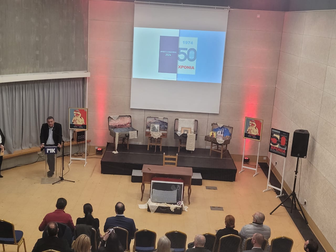 Στην εκδήλωση προβλήθηκε δραματοποιημένη αφήγηση της κυπριακής τραγωδίας με τίτλο «50 χρόνια σε μια βαλίτσα» με πρωταγωνιστή τον διακεκριμένο ηθοποιό Σταύρο Λούρα σε κείμενο που έγραψε ο δημοσιογράφος του ΡΙΚ, Θεόδουλος Κουλλαπής και μουσική της Μαρίνας Χαραλάμπους.