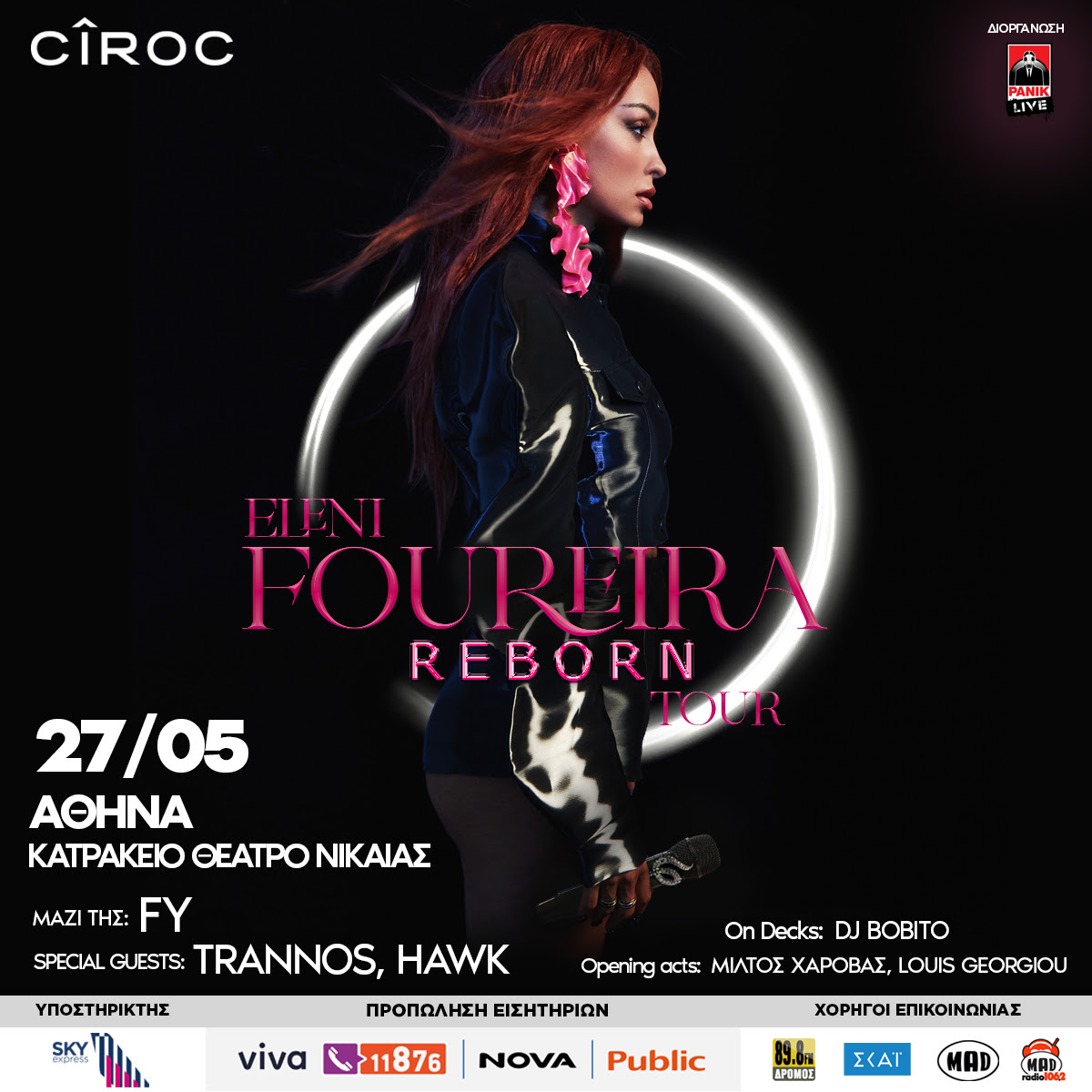 Το «Reborn Tour», μία παραγωγή υψηλών προδιαγραφών της Panik Live, με την ιδιαίτερη αισθητική της Ελένης Φουρέιρα, θα ξεκινήσει στις 27 Μαΐου από την Αθήνα και το Κατράκειο Θέατρο και θα συνεχιστεί σε στάδια και μεγάλα θέατρα σε Ελλάδα κι εξωτερικό.