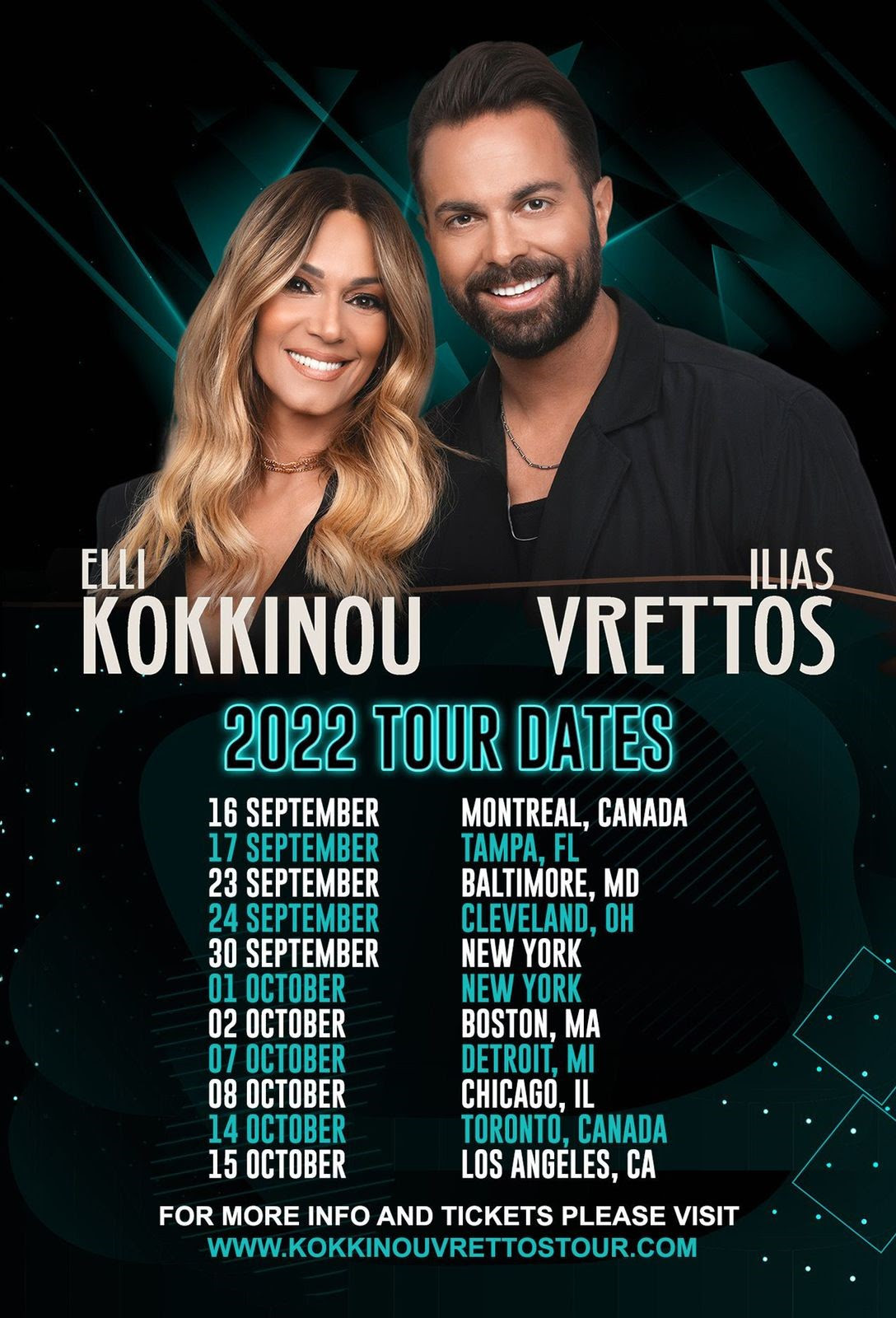 Οι δύο επιτυχημένοι και δημοφιλείς καλλιτέχνες, που ανήκουν στη δισκογραφική οικογένεια της Panik, ξεκινούν στις 16 Σεπτεμβρίου από το Μόντρεαλ του Καναδά ένα μεγάλο tour 11 συναυλιών σε 5 εβδομάδες, με σταθμούς σε πόλεις όπου χτυπά δυνατά η καρδιά των Ελλήνων ομογενών, όπως οι Τάμπα, Βαλτιμόρη, Νέα Υόρκη, Βοστώνη, Σικάγο, Ντιτρόιτ, Τορόντο και Λος Άντζελες.
