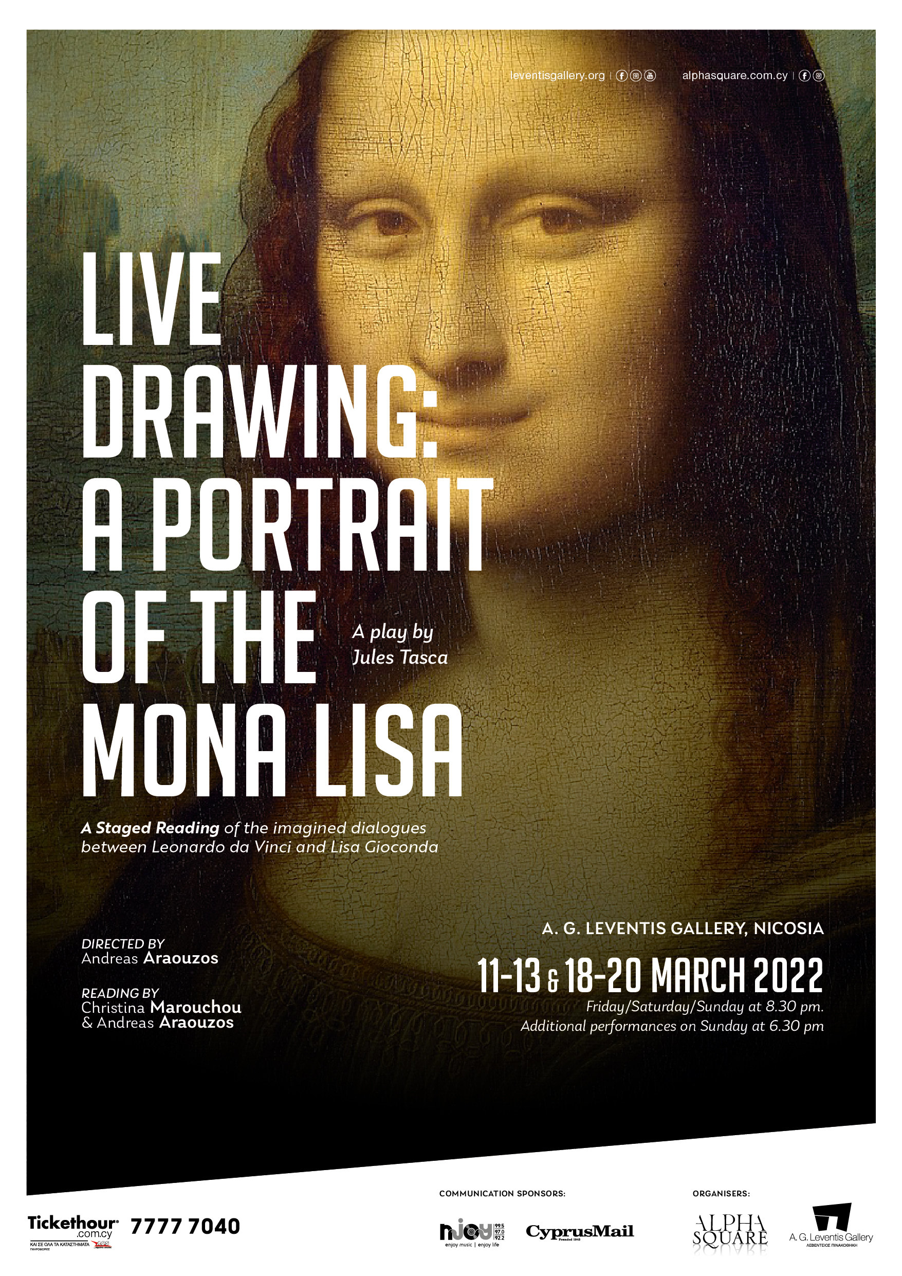 Το κοινό της Alpha Square στην Λεβέντειο Πινακοθήκη υπήρξε ιδιαίτερα θερμό στην πιο πρόσφατή τους συνεργασία, με αφορμή τα όγδοα γενέθλια της Πινακοθήκης. Το θεατρικό έργο του Jules Tasca «Ζωντανή Ζωγραφιά: Ένα Πορτρέτο της Μόνα Λίζα» θα παρουσιαστεί ως σκηνοθετημένο αναλόγιο στην Αγγλική, σε σκηνοθεσία Ανδρέα Αραούζου, για μια επιπρόσθετη παράσταση την Κυριακή 3 Απριλίου και περιοδεύει στο Ριάλτο Λεμεσού στις 4 Απριλίου.