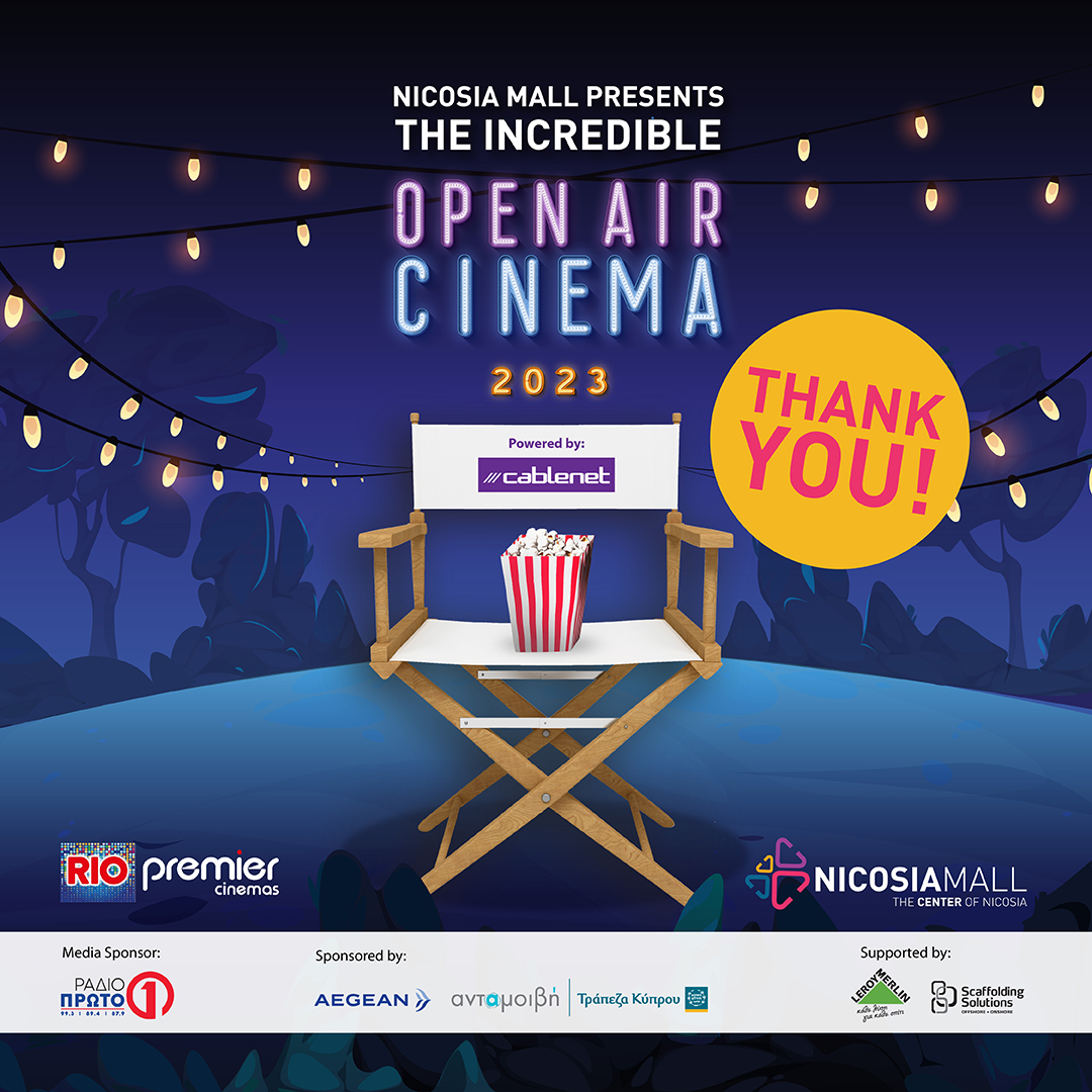 Το Nicosia Mall και τα Rio Premier Cinemas ευχαριστούν τις εταιρείες Τράπεζα Κύπρου και Σχέδιο Ανταμοιβή, AEGEAN, Cablenet, Leroy Merlin, Scaffolding Solutions και Ράδιο Πρώτο για όλη τη στήριξη και τη συνεργασία.