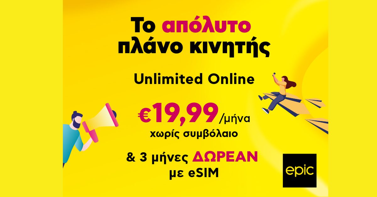 Ψάχνεις το ιδανικό πλάνο κινητής που να σου ταιριάζει; Τα θες όλα, αλλά δυσκολεύεσαι να τα βρεις; Μην κουράζεσαι άλλο. Η Epic δημιούργησε για ‘σένα το Unlimited Online, το απόλυτο πλάνο κινητής που τα έχει όλα και συμφέρει.