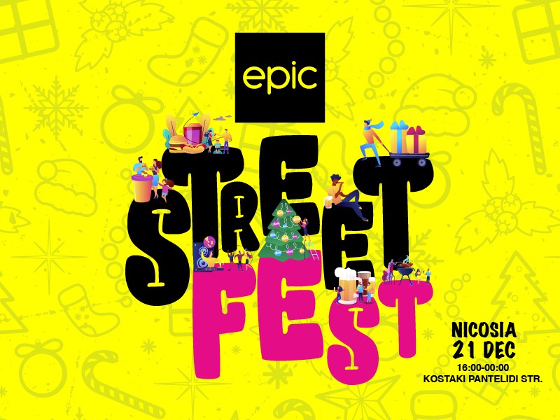 Το Σάββατο 21 Δεκεμβρίου, από τις 4 το απόγευμα μέχρι τα μεσάνυχτα, η οδός Κωστάκη Παντελίδη στη Λευκωσία, δίπλα στην Πλατεία Ελευθερίας, ντύνεται με τα χρώματα του Epic Street Fest σε ένα υπαίθριο χριστουγεννιάτικο πάρτι που κανείς δεν πρέπει να χάσει.