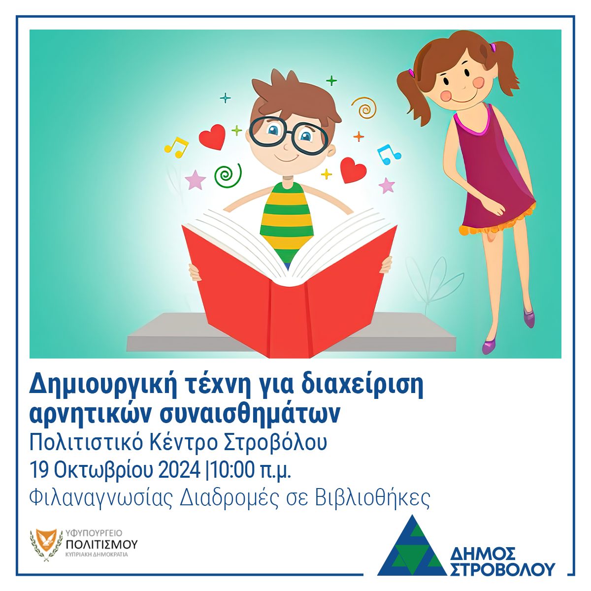 Η Δημοτική Βιβλιοθήκη Στροβόλου σε συνεργασία με το ενιαίο, ολοήμερο Δημοτικό Σχολείο «Πεύκιος Γεωργιάδης» διοργανώνουν εργαστήρι δημιουργικών τεχνών για τη διαχείριση της θλίψης, μέσα από την ποίηση και το παραμύθι για παιδιά.