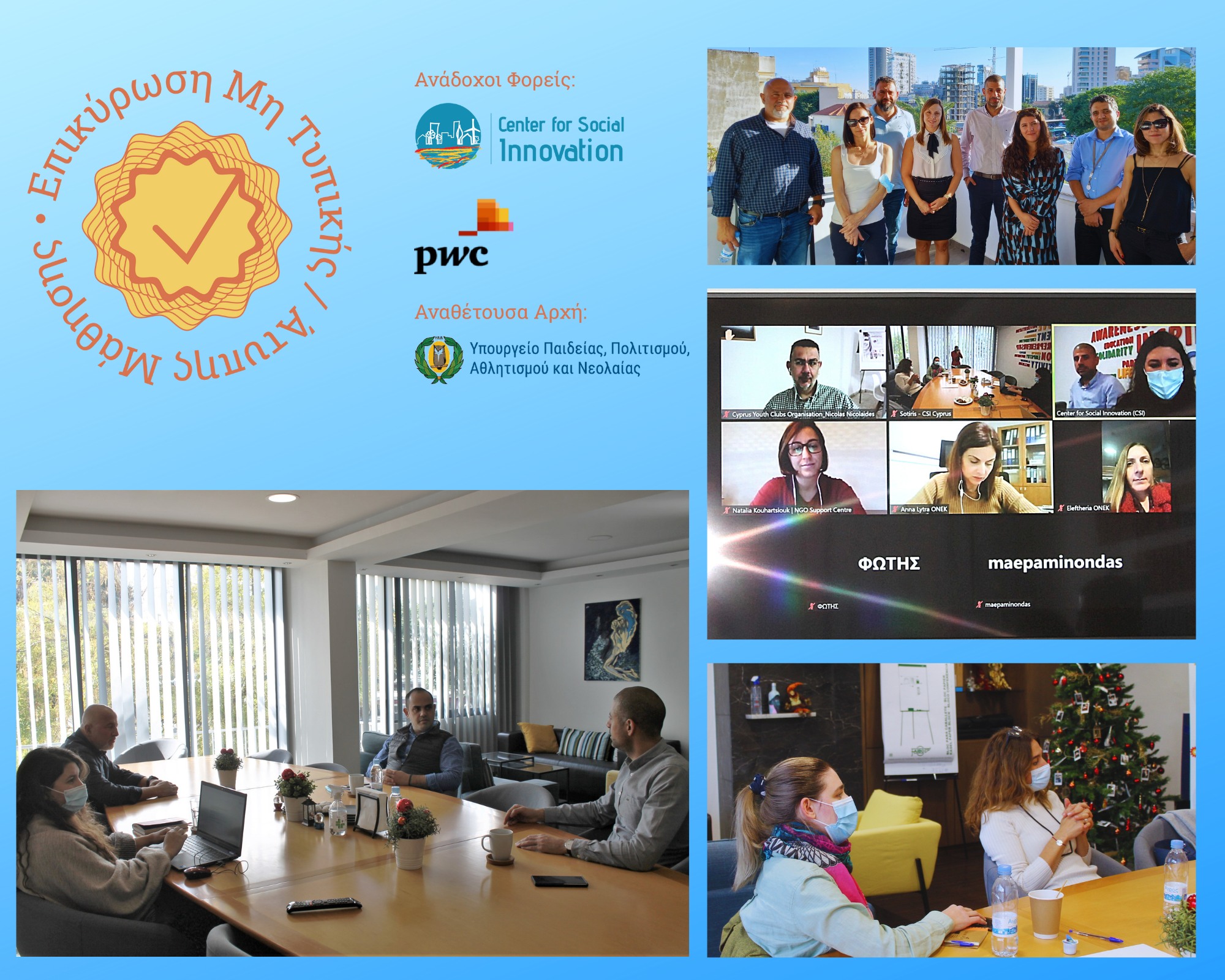 Tο Έργο για τη Θέσπιση Μηχανισμών Επικύρωσης Μη Τυπικής / Άτυπης Μάθησης στην Κύπρο που εφαρμόζεται από το Center for Social Innovation – CSI μαζί με την PwC Cyprus , βρίσκεται σε πλήρη εξέλιξη μαζί με τους κύριους φορείς στους τομείς Νεολαίας, Εκπαίδευσης Ενηλίκων και Εθελοντισμού και την Αναθέτουσα Αρχή, το Υπουργείο Παιδείας, Πολιτισμού, Αθλητισμού και Νεολαίας .