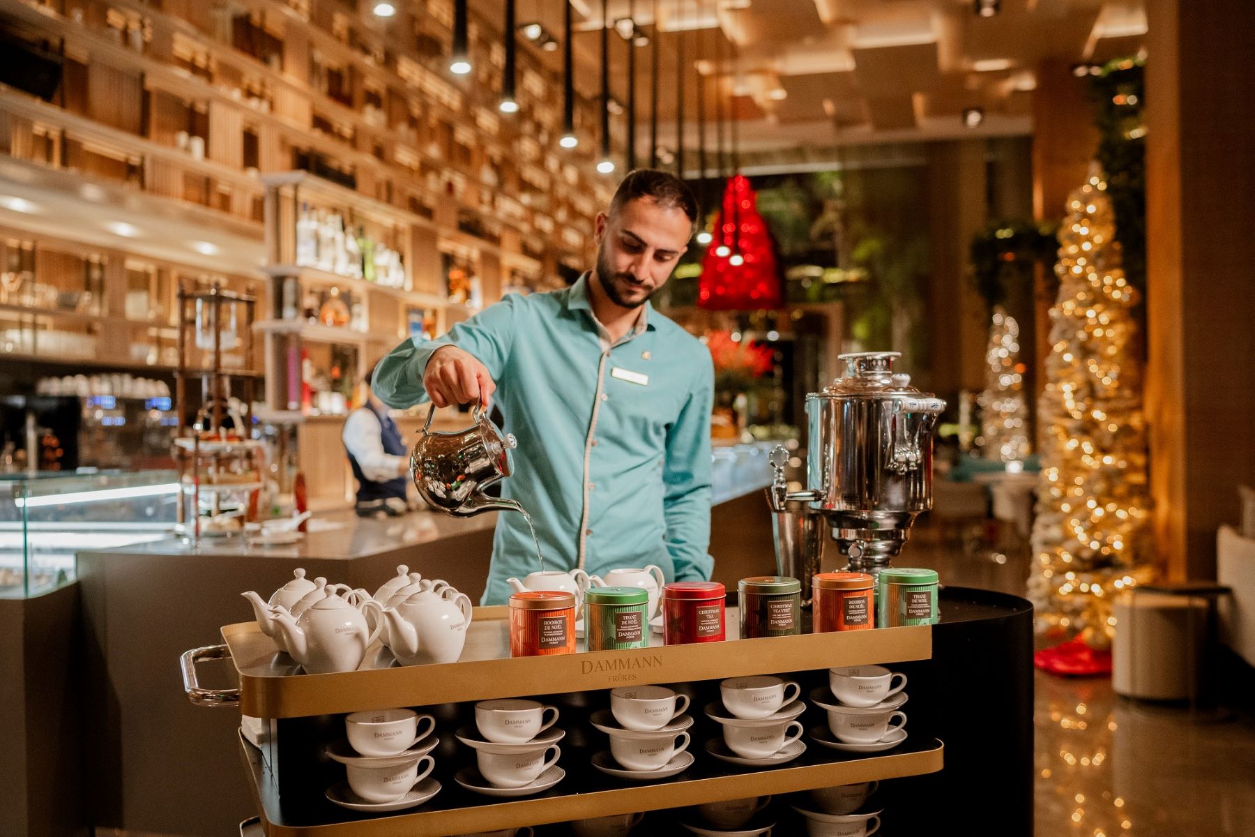 Τα τσάγια από την προσεκτικά επιλεγμένη συλλογή του οίκου Dammann Frères γίνονται οι πρωταγωνιστές ενός ταξιδιού με νότες μπαχαρικών, αρωματικών βοτάνων και φρούτων. Christmas Tea, μαύρο τσάι με ζωηρές νότες πορτοκαλιού, ανανά και καραμέλας. Christmas Tea Vert, πράσινο τσάι που παντρεύει την αρμονία του πορτοκαλιού με τη βανίλια. Rooibos de Noël, αρωματικό τσάι που φέρνει τη ζεστασιά των μπαχαρικών και του gingerbread. Tisane de Noël, ένα ξεχωριστό μείγμα βοτάνων με τζίντζερ, κάρδαμο και νότες κακάο.