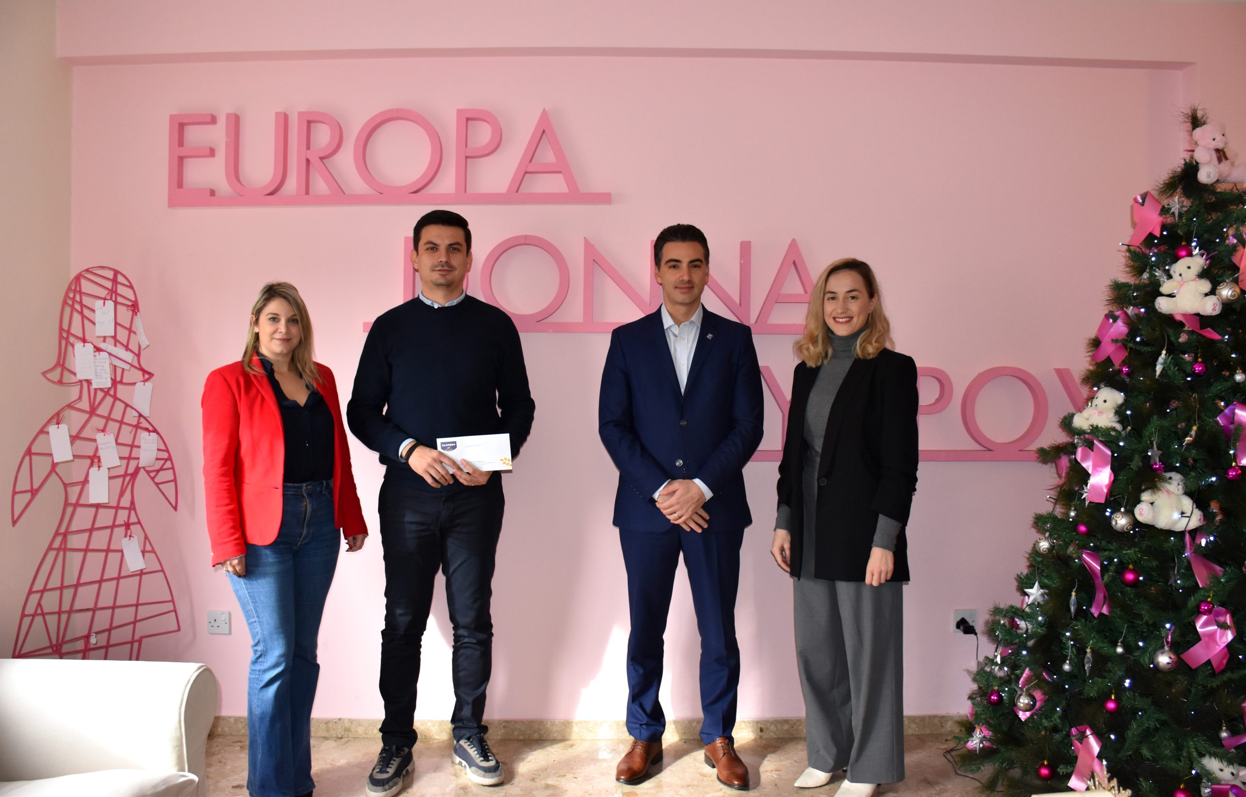 Την Πέμπτη, 7 Δεκεμβρίου 2023, ο κ. Μιχάλης Πέτρου, Εμπορικός Διευθυντής, και η κ. Αναστασία Νάτσικα, Brand Manager της Γαλακτοβιομηχανίας ΑΛΑΜΠΡΑ, συνοδευόμενοι από την κ. Νατάσα Κωνσταντινίδου, Διευθύντρια Επικοινωνίας και Εταιρικής Κοινωνικής Ευθύνης των Υπεραγορών ΑΛΦΑΜΕΓΑ, επισκέφθηκαν το Σπίτι της Europa Donna στη Λευκωσία και παρέδωσαν στον κ. Μάριο Χαραλαμπίδη, Εκτελεστικό Διευθυντή, επιταγή για την ενίσχυση του πολύτιμου έργου του οργανισμού.