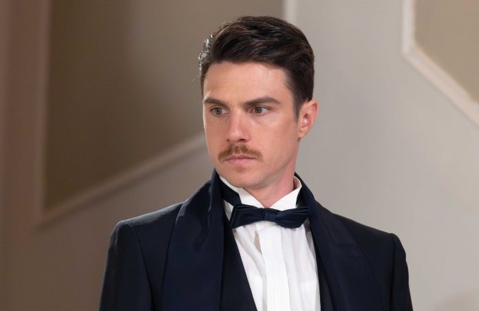 Ο Άρης Δανέζης (Δημήτρης Κίτσος) κάνει check in στον 2ο Κύκλο του «GRAND HOTEL» και παραδίδει την ταυτότητά του στη ρεσεψιόν του πολυτελούς ξενοδοχείου.