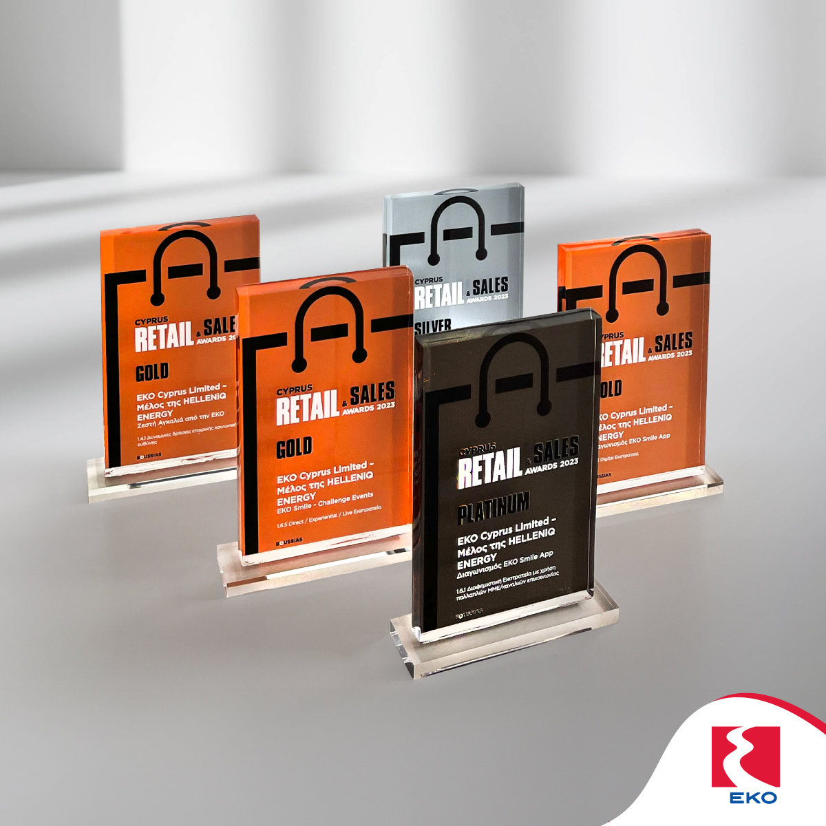 Aναλυτικά, η EKO Kύπρου κέρδισε τα εξής: Πλατινένιο Βραβείο για τον «Διαγωνισμό EKO Smile» στην κατηγορία «Διαφημιστική Εκστρατεία με χρήση πολλαπλών ΜΜΕ/καναλιών επικοινωνίας», Χρυσό Βραβείο στην κατηγορία «Δυναμικές Δράσεις ΕΚΕ», Χρυσό Βραβείο για τον «Διαγωνισμό EKO Smile» στην κατηγορία «Digital Εκστρατεία», Χρυσό Βραβείο για το ‘EKO Smile Challenge Events’ στην κατηγορία «Direct / Experiential / Live Εκστρατεία» και Ασημένιο Βραβείο για τον «Διαγωνισμό EKO Smile» στην κατηγορία «Εξαιρετική Επιχειρηματική Επίδοση».