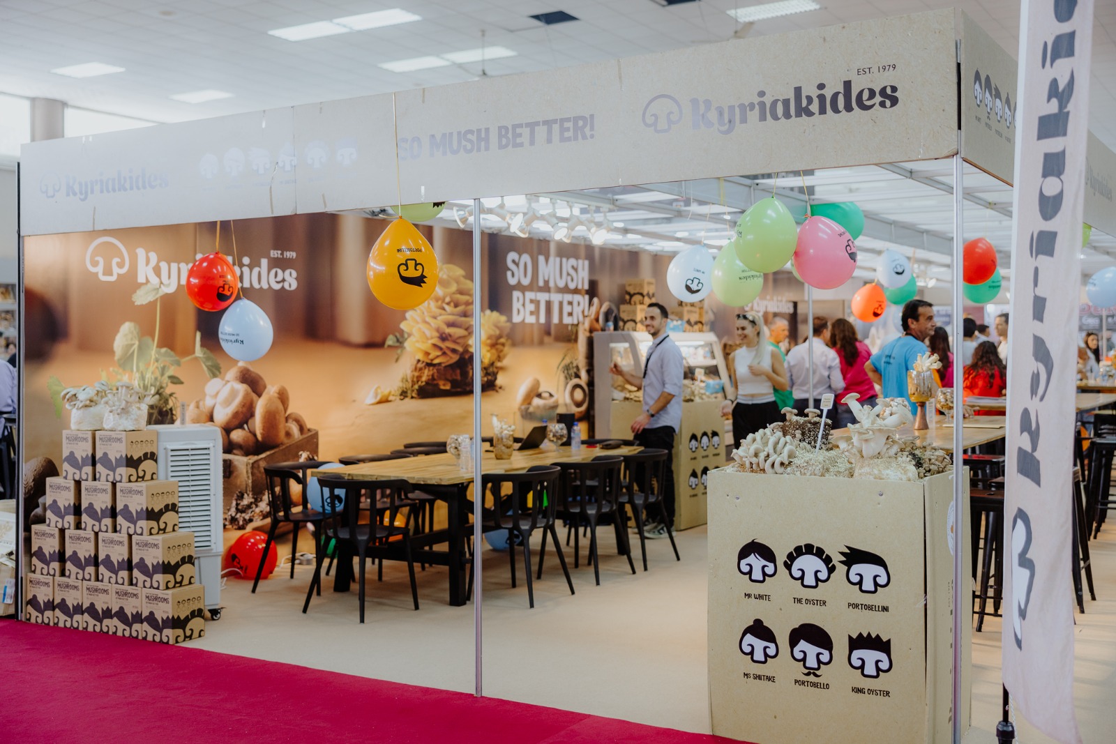 Όσοι επισκέφτηκαν το εντυπωσιακό περίπτερό μας κατά τη διάρκεια της έκθεσης, είχαν την ευκαιρία να δοκιμάσουν μοναδικές γευστικές δημιουργίες, βασισμένες στα εκλεκτά προϊόντα μας και να ανακαλύψουν την ποικιλία των Kyriakides Mushrooms! Παρουσιάσαμε τα προϊόντα μας, όπως αυτά προσφέρονται στα μεγαλύτερα supermarket της χώρας, καθώς και τις έξυπνες συσκευασίες μας, οι οποίες δίνουν τη δυνατότητα στους καταναλωτές να επιλέξουν αν επιθυμούν το προϊόν τεμαχισμένο ή ολόκληρο.