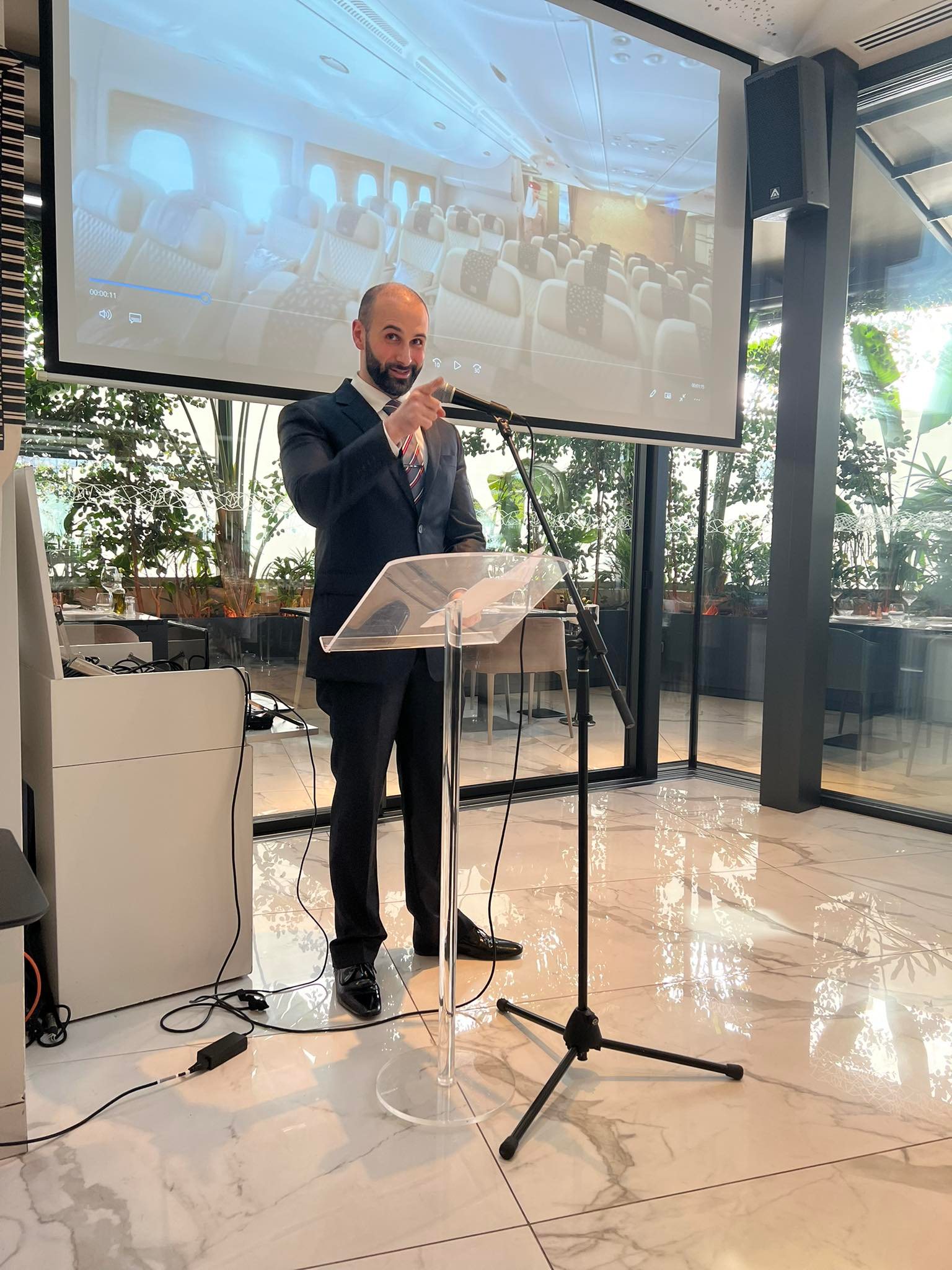 Σε εκδήλωση που πραγματοποιήθηκε στη Λευκωσία την Τρίτη 12 Απριλίου, η Emirates παρουσίασε τις αναδυόμενες τάσεις και καινοτομίες στον κλάδο των αερομεταφορών, εξερευνώντας το μέλλον των ταξιδιών. Ο Khalid Al Zarooni, Country Manager της Emirates για την Ελλάδα και την Αλβανία, ο οποίος επιβλέπει τις δραστηριότητες της αεροπορικής εταιρείας στην Κύπρο, έδωσε μια εντυπωσιακή ομιλία στο κοινό που αποτελούταν από πάνω από 40 δημοσιογράφους, συντάκτες και διευθυντές από μερικά από τα κορυφαία κυπριακά μέσα ενημέρωσης.