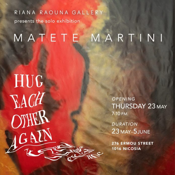 Η Γκαλερί Riana Raouna παρουσιάζει την πρώτη ατομική έκθεση της Matete Martini στην Κύπρο με τίτλο “HUG EACH OTHER AGAIN”. Η έκθεση θα πραγματοποιηθεί από τις 23 Μαΐου μέχρι τις 5 Ιουνίου, στην οδό Ερμού 276 στη Λευκωσία.