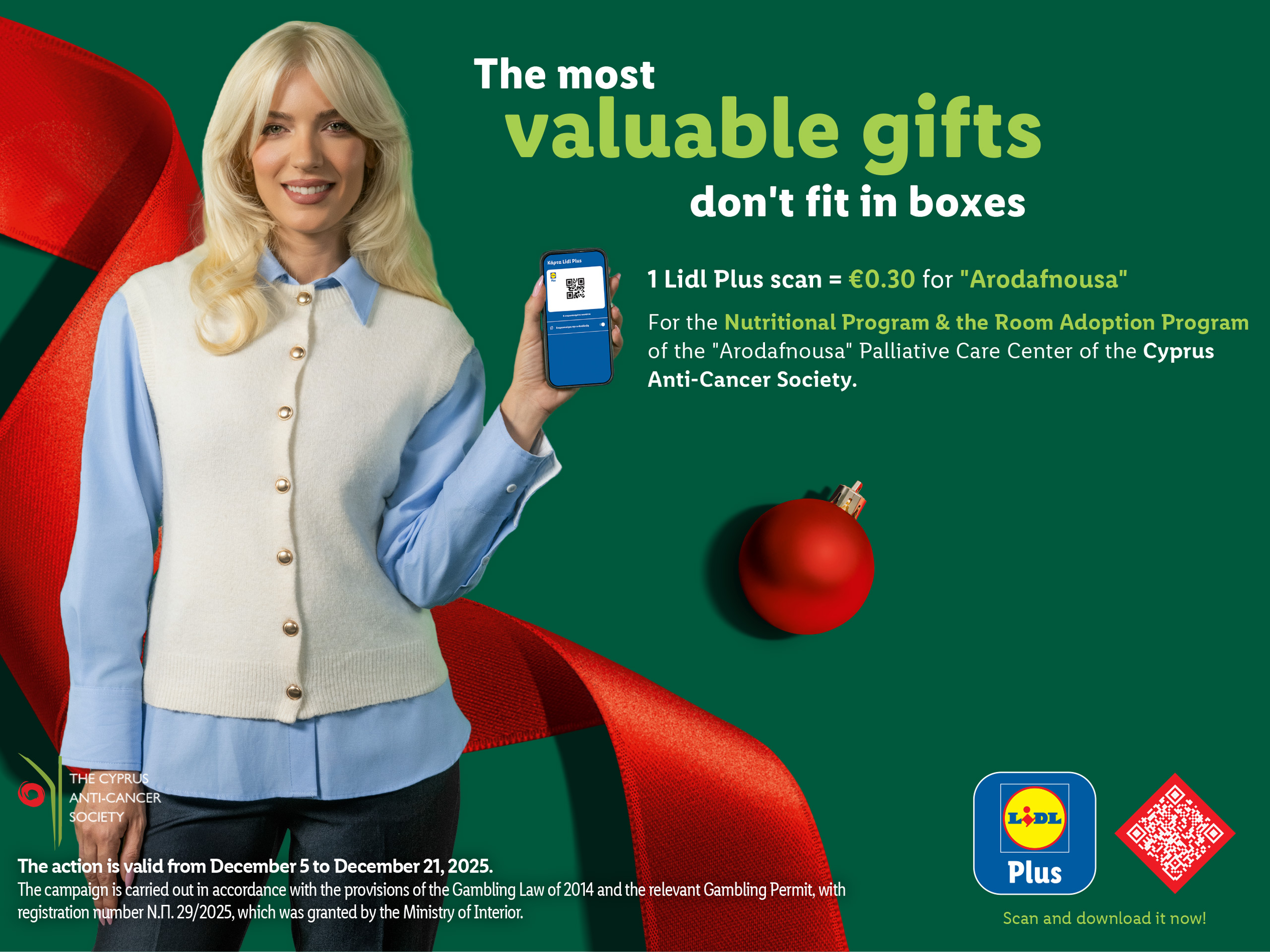 Τα φετινά Χριστούγεννα, η Lidl Κύπρου ενώνει τις δυνάμεις της με τον «Αντικαρκινικό Σύνδεσμο Κύπρου», εξασφαλίζοντας ουσιαστική στήριξη, ανακούφιση και ελπίδα.
