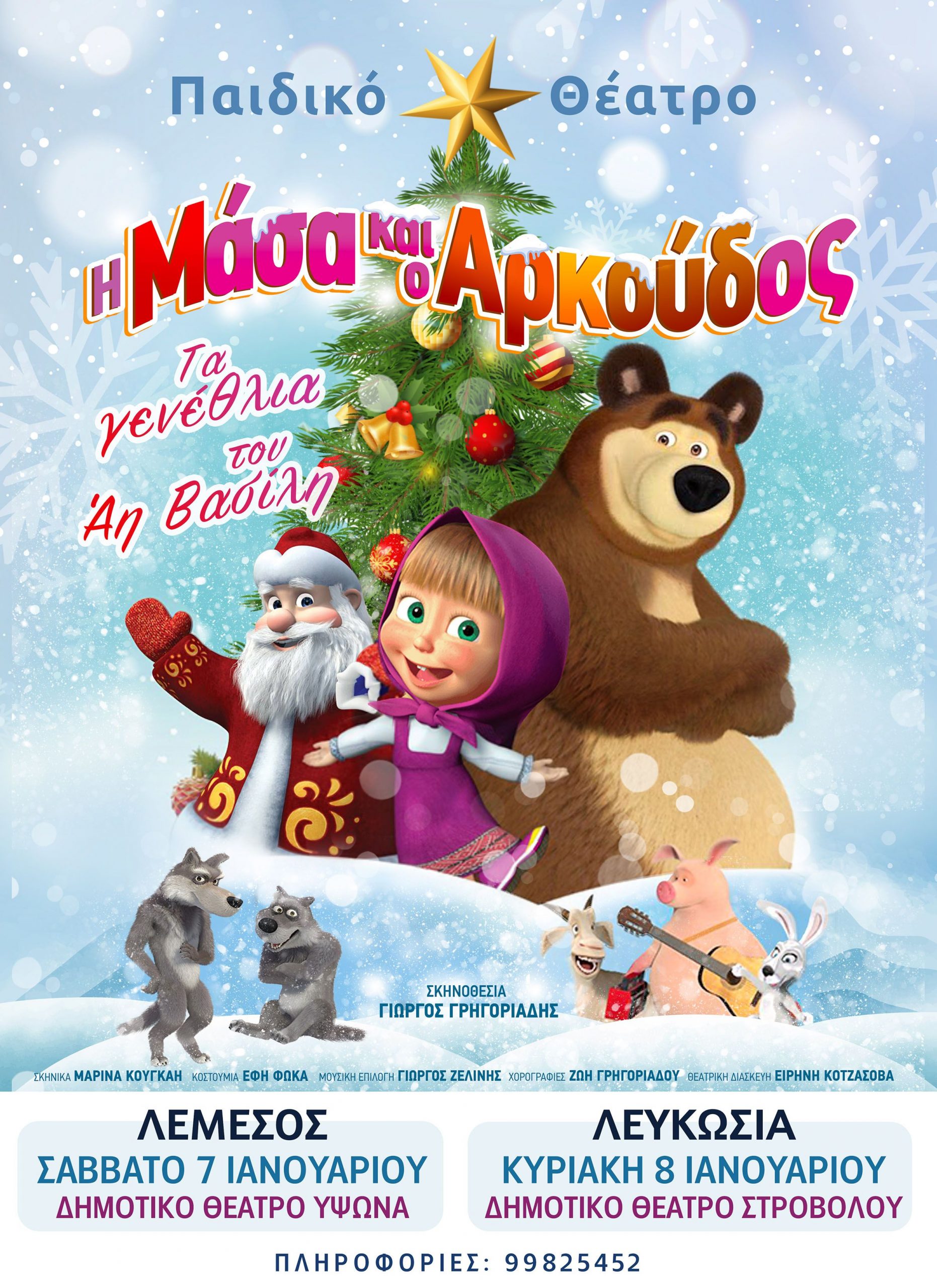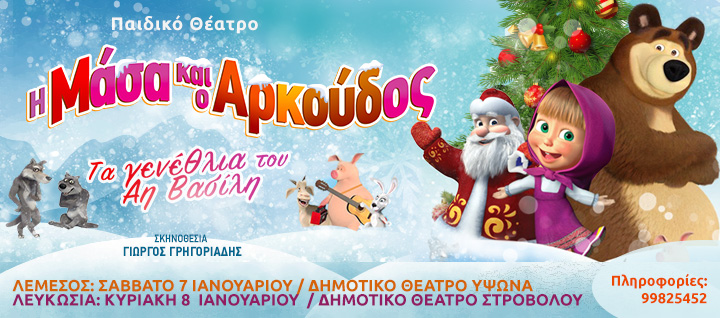 Λόγω ανυπέρβλητων τεχνικών προβλημάτων, οι παραστάσεις για το παιδικό έργο “Η Μάσα και ο Αρκούδος: Τα γενέθλια του Άη Βασίλη” στην Κύπρο στις 7 Ιανουαρίου στο Δημοτικό Θέατρο Ύψωνα και στις 8 Ιανουαρίου στο Δημοτικό Θέατρο Στροβόλου, ακυρώνονται.