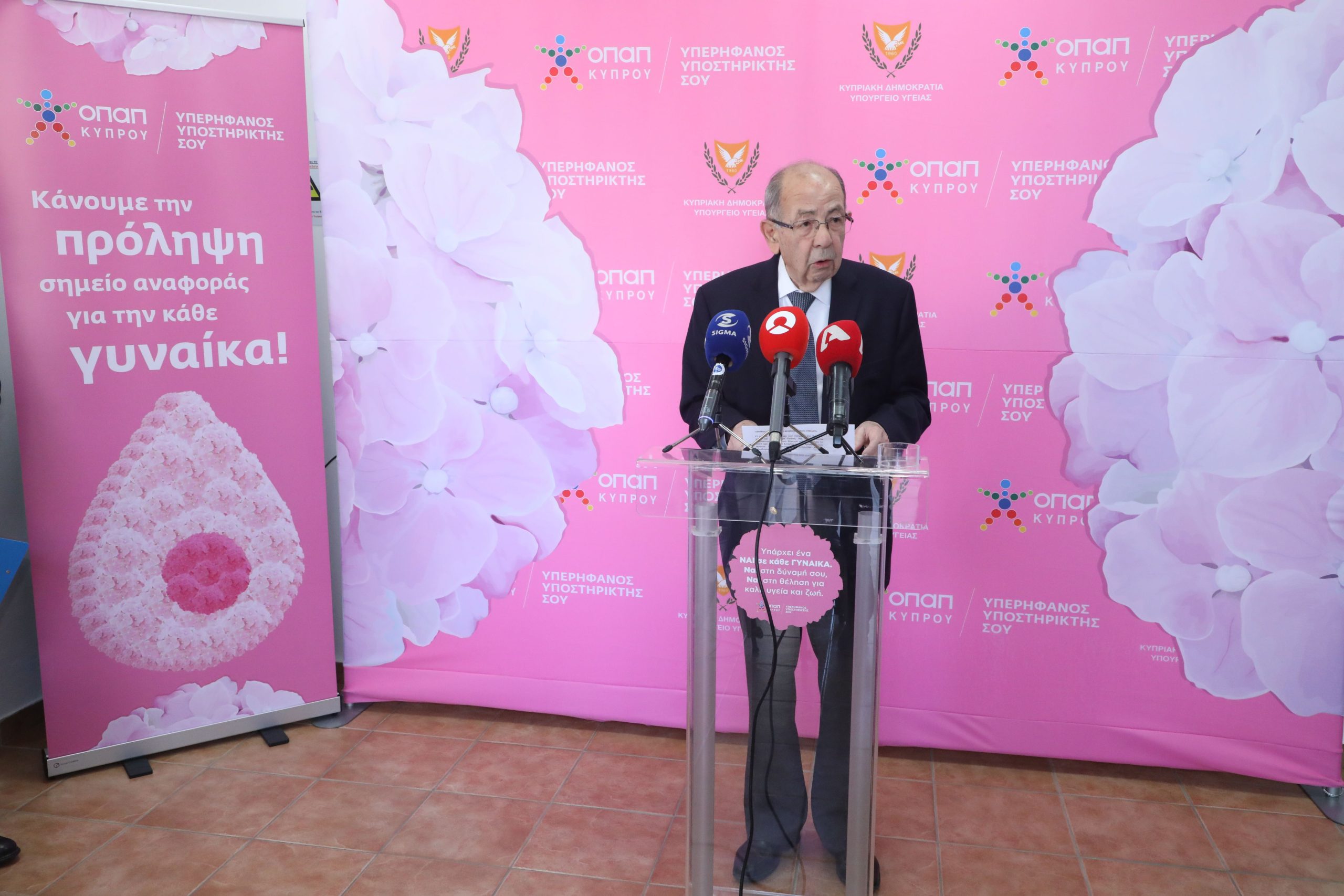 Ο κύριος Μακρίδης διαβεβαίωσε τον Υπουργό Υγείας ότι η ΟΠΑΠ Κύπρου θα εξακολουθήσει να στηρίζει τους σχετικούς σχεδιασμούς της Πολιτείας, γιατί αυτό επιβάλλει η ανάγκη να προστατευθεί το αγαθό της υγείας για τον κάθε συνάνθρωπο μας, αλλά και γιατί αυτό υπαγορεύει η σταθερή ανθρωποκεντρική φιλοσοφία δράσης της ΟΠΑΠ Κύπρου. Καταλήγοντας ο κύριος Μακρίδης εξέφρασε το σεβασμό του στις γυναίκες που μάχονται για να κερδίσουν την υγεία και την ίδια τη ζωή, καλώντας όλες να αξιοποιήσουν ευνοϊκά τα Μαστογραφικά Κέντρα, αναζητώντας την έγκαιρη διάγνωση και πρόληψη του καρκίνου.