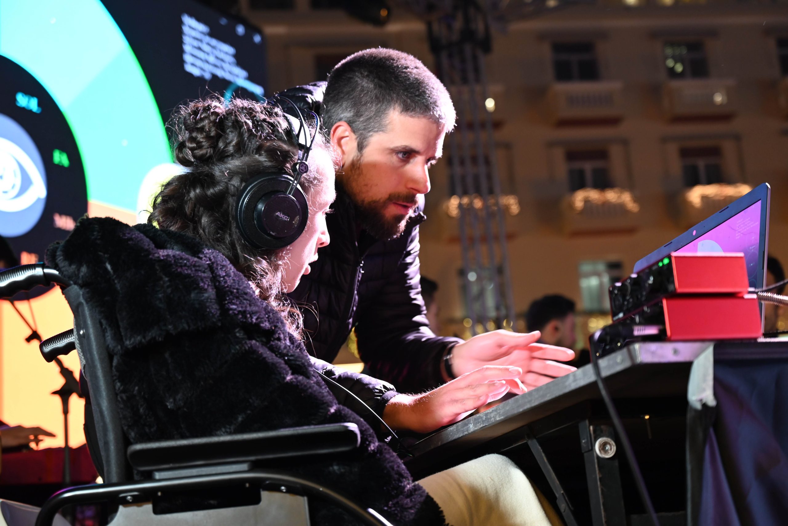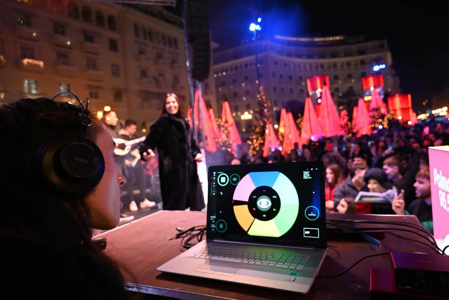 Στην Χριστουγεννιάτικη και κατάμεστη πλατεία Αριστοτέλους, δίπλα από το παραμυθένιο ξύλινο σπιτάκι του Palmos 96.5 η πρώτη τετραπληγική Ελληνίδα μουσικός, Αλεξάνδρα Κερλίδου, έπαιξε μουσική με τα μάτια για την πιο viral τραγουδίστρια της Ελληνικής μουσικής σκηνής , την Αναστασία στην πιο συγκινητική συναυλία της χρονιάς που διοργάνωσε ο Palmos 96.5 σε συνεργασία με την DUST+CREAM.