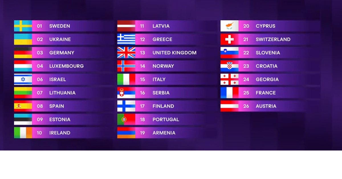 Η σειρά που θα ακούσουμε απόψε τα τραγούδια. Στον αριθμό 5 ήταν η Ολλανδία η οποία αποκλειστηκε σήμερα το μεσημέρι απο την EBU