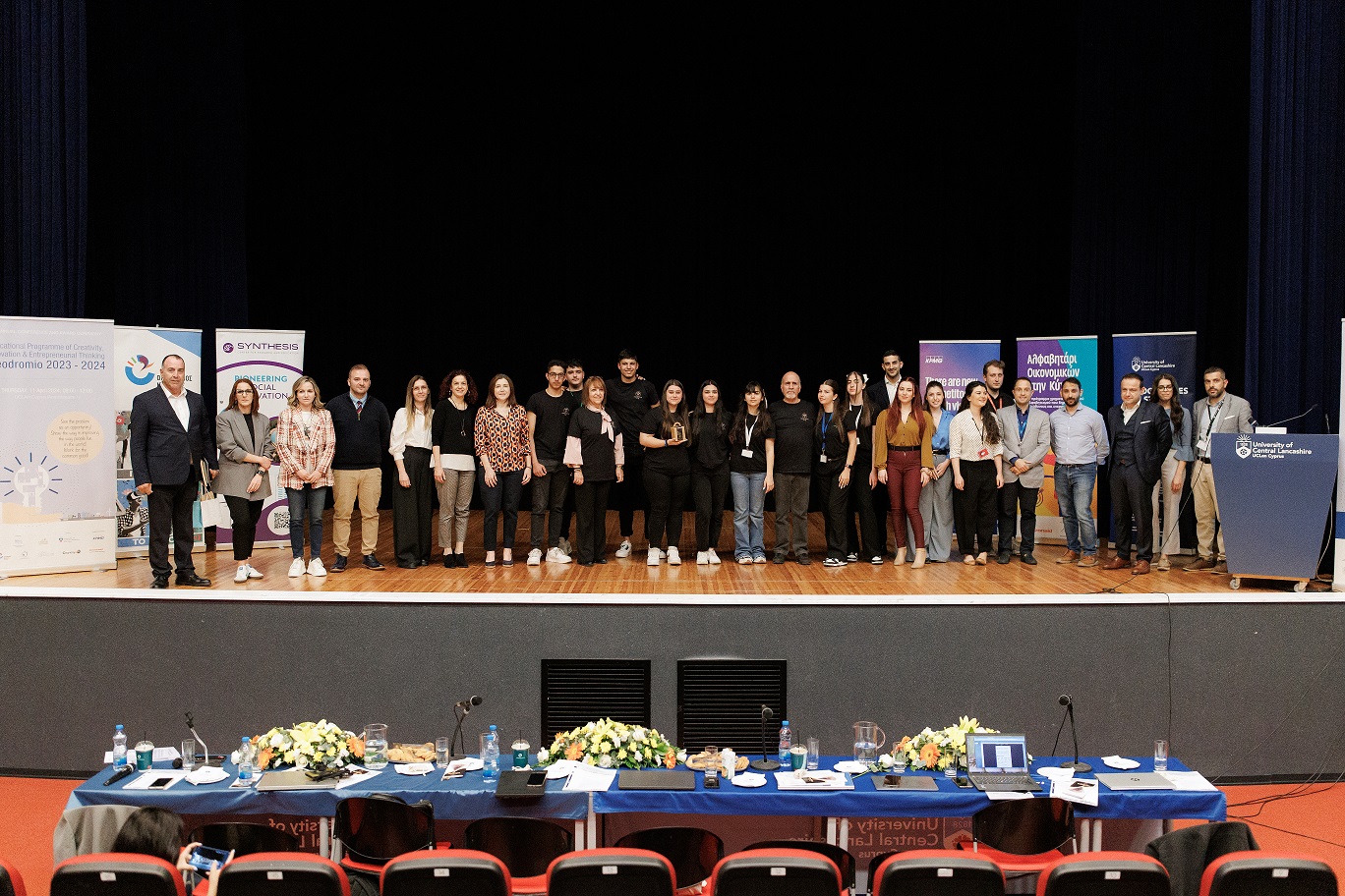 Ακολούθησε ο χαιρετισμός της Υπουργού Παιδείας, Αθλητισμού και Νεολαίας Δρος Αθηνάς Μιχαηλίδου από την προϊστάμενη του Παιδαγωγικού Ινστιτούτου, κ. Χριστίνα Παπασολομώντος και του Κοσμήτορα της Σχολής Διοίκησης και Επιχειρήσεων του πανεπιστημίου UCLan CYPRUS, Καθηγητή Λούκα Γλύπτη. Επίσης, ακολούθησε χαιρετισμός από τον κ. Παγκράτιο Βανέζη, Διοικητικό Σύμβουλο και επικεφαλής της Ομάδας Επιχειρηματικότητας και Νεοφυών Επιχειρήσεων της KPMG Κύπρου.