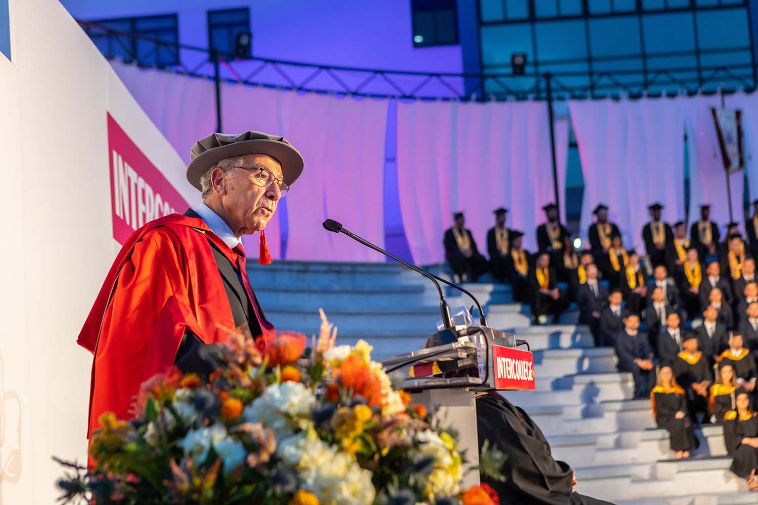 Απευθυνόμενος στις νέες και νέους αποφοίτους κατά την τελετή αποφοίτησης ο Δρ. Αιμίλιος Α. Σολωμού, Πρόεδρος του Κολλεγίου, ανέφερε μεταξύ άλλων ότι: « Σαν Intercollege θέλουμε να πιστεύουμε ότι έχουμε δώσει στους απόφοιτους και της φετινής χρονιάς όλα τα εφόδια για την πραγματοποίηση των στόχων και των ονείρων τους. Στόχος μας ήταν και είναι πάντοτε να προσφέρουμε στους νέους και νέες που αποφασίζουν να συνεχίζουν τις σπουδές τους στην Κύπρο ένα εκπαιδευτικό ίδρυμα με όλες τις αναγκαίες κτιριακές εγκαταστάσεις και εξοπλισμό καθώς και προσοντούχο και άρτια καταρτισμένο προσωπικό.