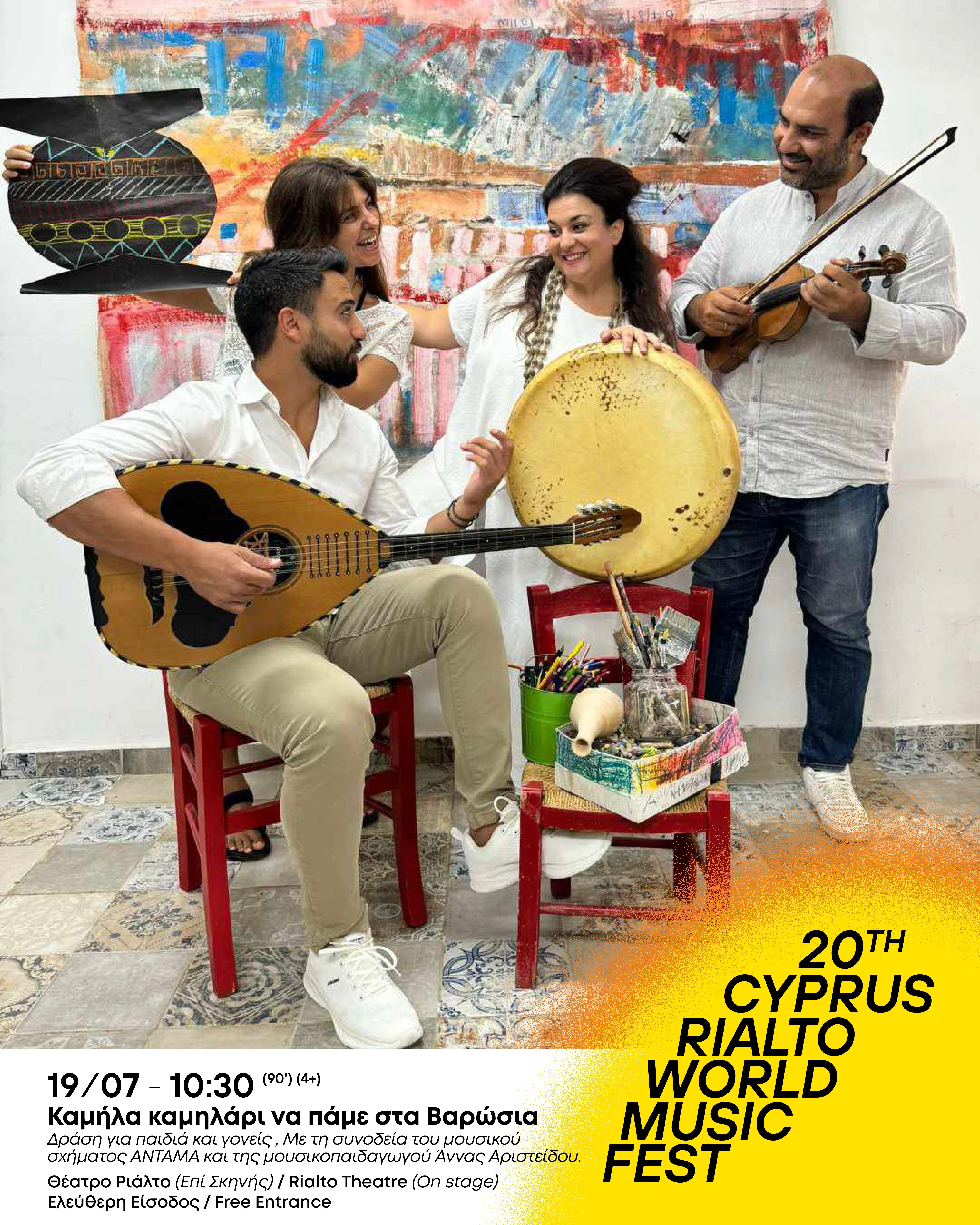 Μέσα από μια δραστηριότητα εμπνευσμένη από την μουσική του νησιού μας, προσκαλούμε τα παιδιά να γνωρίσουν να τραγουδήσουν και να εικονογραφήσουν τα παραδοσιακά παιδικά τραγούδια το τόπου μας. Με τη συνοδεία του μουσικού σχήματος, ANTAMA και την μουσικοπαιδαγωγό Άννα Αριστείδου θα ανακαλύψουμε τα παραδοσιακά μουσικά όργανα. Θα γνωρίσουμε από κοντά το βιολί, το λαούτο την ταμπουτσιά, το πιθκιαυλί θα αναγνωρίσουμε από τι υλικά είναι κατασκευασμένα, καθώς και σε ποια κατηγορία ανήκει το κάθε ένα μέσω δια δραστικών μουσικών παιχνιδιών. Το κοινό θα έχει την ευκαιρία να ακούσει και να τραγουδήσει αντάμα, γνωστά και άγνωστα ταχταρίσματα όπως «Πύρι πύρι τα παπύρι», «Καμήλα καμηλάρι», «Τσίμπι τσίμπι τον αητό» το «Ντίλι Ντίλι» κ.α