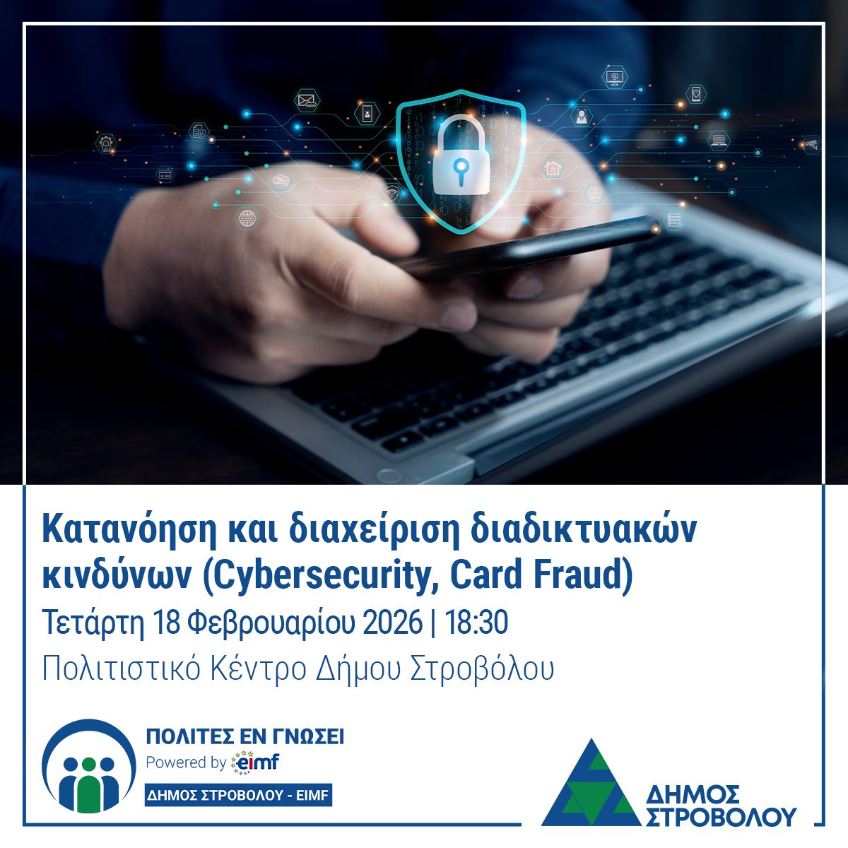 Απαραίτητη η δήλωση συμμετοχής, μέχρι τη Δευτέρα 16 Φεβρουαρίου 2026 στον σύνδεσμο: Κατανόηση και διαχείριση διαδικτυακών κινδύνων (Cybersecurity, Card Fraud) – Fill in form