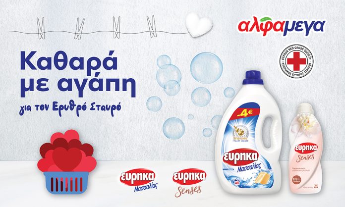 Μέσω της εκστρατείας «Καθαρά με αγάπη, για τον Ερυθρό Σταυρό», οι δύο εταίροι στηρίζουν το έργο του Κ.Ε.Σ. διαθέτοντας €0,30 για κάθε αγορά οποιουδήποτε υγρού απορρυπαντικού ΕΥΡΗΚΑ ΜΑΣΣΑΛΙΑΣ ή μαλακτικού ρούχων ΕΥΡΗΚΑ Senses, από τις Υπεραγορές ΑΛΦΑΜΕΓΑ, κατά την περίοδο 08/05 – 26/05. Οι Υπεραγορές ΑΛΦΑΜΕΓΑ και η εταιρεία ΕΥΡΗΚΑ καλούν το καταναλωτικό κοινό να συμμετάσχει στην εκστρατεία αγάπης που διοργανώνουν, με μοναδικό στόχο την προσφορά στον συνάνθρωπο, και να στείλουν μαζί ένα δυνατό μήνυμα αλληλεγγύης και συμπαράστασης.