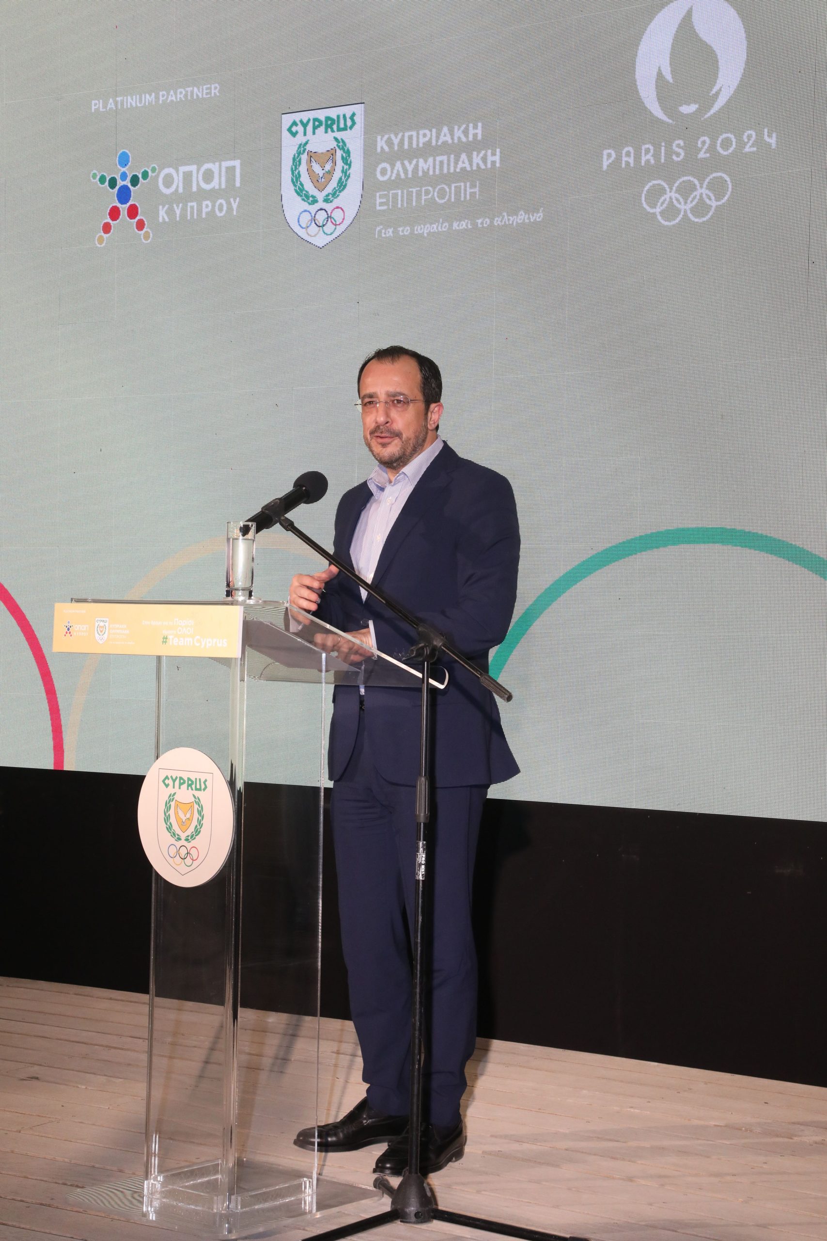Ο Πρόεδρος της Δημοκρατίας συνεχάρη τους αθλητές για την εξασφάλιση της συμμετοχής τους στους Ολυμπιακούς στο Παρίσι, μεταφέροντας τη σιγουριά του ότι θα δώσουν τoν καλύτερο εαυτό τους για να τιμήσουν τα χρώματα της Κύπρου. Εξέφρασε επίσης την ικανοποίηση του για το συνολικό έργο της Κυπριακής Ολυμπιακής Επιτροπής καθώς και τις ευχαριστίες του στους χορηγούς, τονίζοντας ιδιαίτερα την πολύμορφη στήριξη της ΟΠΑΠ Κύπρου, όχι μόνο στον αθλητισμό του τόπου. Αξίζει να σημειωθεί ότι ο κύριος Χριστοδουλίδης συμμετείχε και στο σχετικό φιλμάκι μέσα από το οποίο προβάλλεται το μήνυμα ότι «στο δρόμο για το Παρίσι είμαστε όλοι η ομάδα της Κύπρου».
