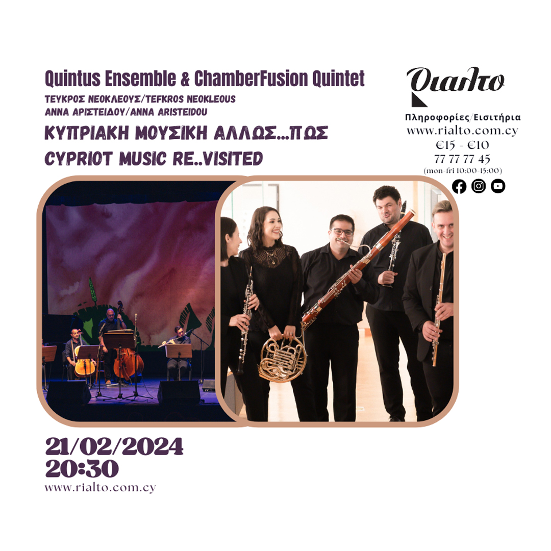 Ένας αλλιώτικος ηχοχρωματικός διάλογος από το Quintus Ensemble και το Κουιντέτο Eγχόρδων ChamberFusion που σκοπό έχει να προσφέρει ένα μουσικό ταξίδι στη Κυπριακή Παραδοσιακή Μουσική υπό την ενορχηστρωτική επιμέλεια του Νεοκλή Νεοφυτίδη και του Βάσου Αργυρίδη.