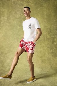 Η αντρική συλλογή περιλαμβάνει πουκάμισα με παιχνιδιάρικα χαβανέζικα μοτίβα, συνδυασμένα με άνετα cargo σορτσάκια και μαγιό, κομμάτια που δίνουν τη γραμμή για ένα αξέχαστο καλοκαίρι. Μεγάλη σημασία προσδίδεται επίσης στη βιωσιμότητα, με οργανικά βαμβακερά που χρησιμοποιούνται στα κομμάτια ολόκληρης της συλλογής και με μαγιό από ανακυκλωμένο πολυεστέρα.