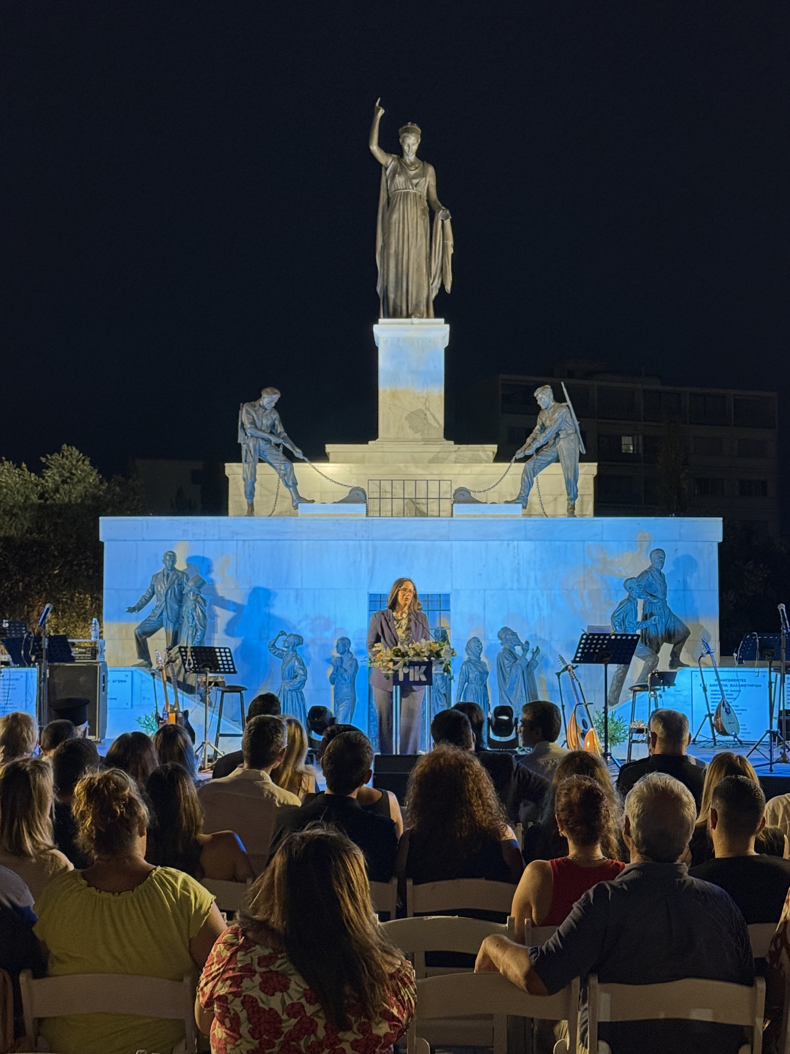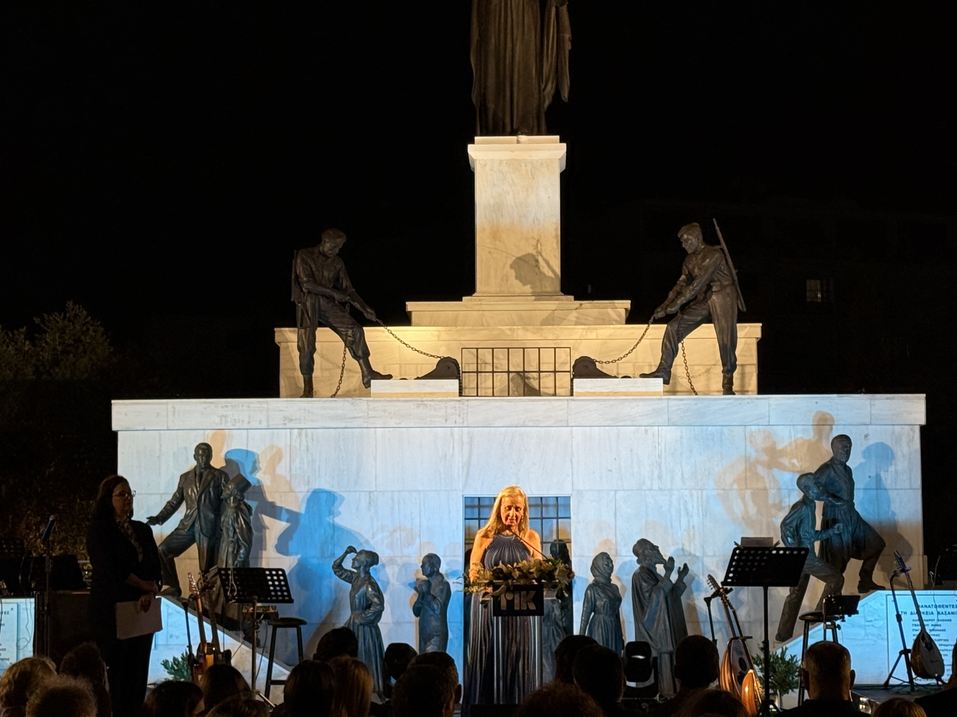 Η κα. Μιχαηλίδου κατέληξε λέγοντας: «Σμίγοντας στον συμβολικό αυτόν χώρο που υψώνεται το Μνημείο Ελευθερίας, και δυναμώνοντας με τη δική μας φωνή, αυτή των επί σκηνής καλλιτεχνών, ας διατρανώσουμε, για ακόμη μία φορά απόψε, τον αδιαπραγμάτευτο πόθο μας να δούμε την Κύπρο μας ελεύθερη και επανενωμένη».