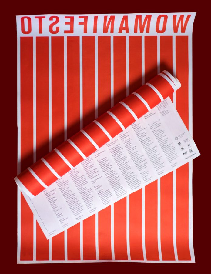 H εικαστικός και σκηνοθέτης του φιλμ WOMANIFESTO Έφη Σπύρου και η ομάδα της RUNONART εμπνέονται από το γιορτινό κλίμα των ημερών, φτιάχνοντας μια συλλογική αφίσα -πόστερ- και ένα χειροποίητο συλλεκτικό μπρελόκ, τα έσοδα των οποίων θα στηρίξουν την πραγματοποίηση του επόμενου φιλμ Womanifetso. Ένα φιλμ που ενώνει για πρώτη φορά στην ιστορία της τέχνης τις φωνές γυναικών καλλιτεχνών από όλο τον κόσμο