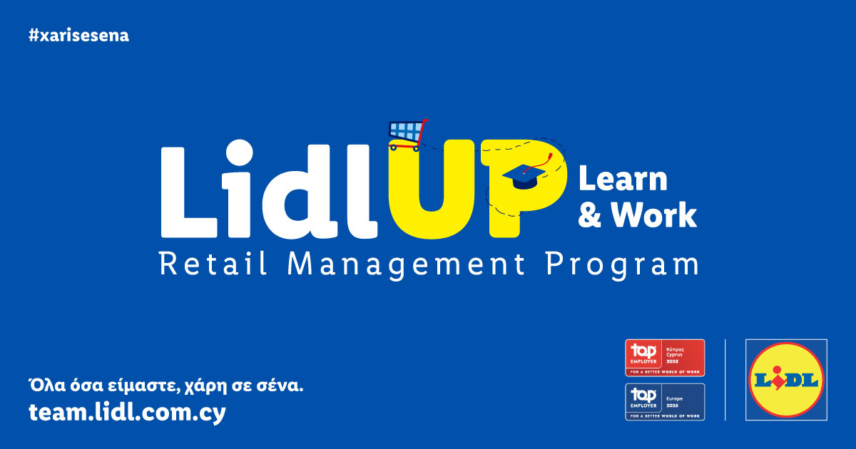 Η Lidl Κύπρου εγκαινιάζει μια νέα εποχή στην επαγγελματική εκπαίδευση και κατάρτιση με το Lidl UP: Learn & Work, ένα πρωτοποριακό πρόγραμμα διττής εκπαίδευσης, που υλοποιείται σε συνεργασία με το Future Skills Hub, το Κέντρο Δια Βίου Μάθησης του Ευρωπαϊκού Πανεπιστημίου  Κύπρου.