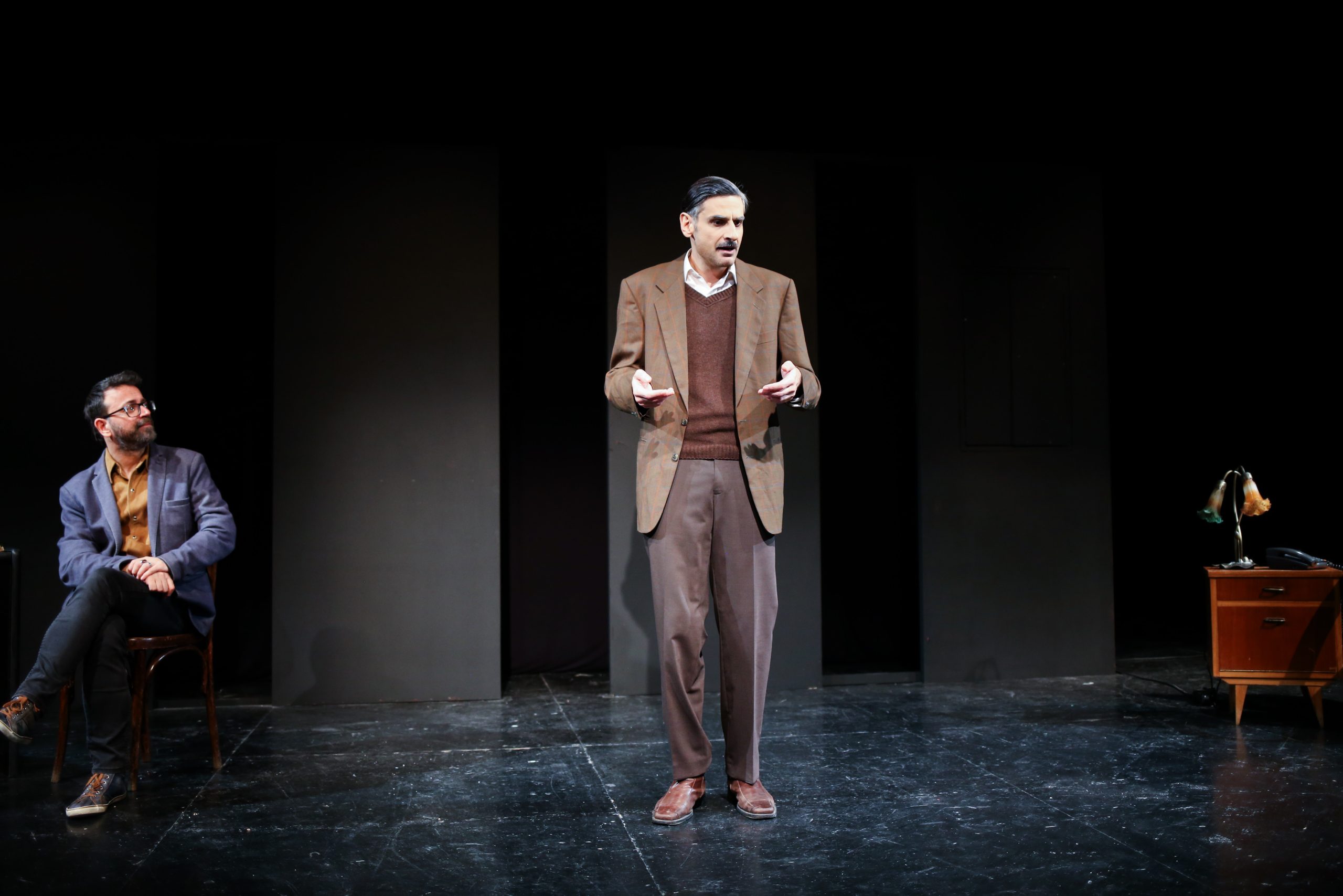 Τον Ντίνο Χριστιανόπουλο υποδύεται στην παράσταση ο Χάρης Φλέουρας, ηθοποιός που εργάζεται ακατάπαυστα στο θέατρο από το 1998 (Ρέπας – Παπαθανασίου, Κραουνάκης, Τσιάνος, Κάλμπαρη, Καλογρίδης) και που για τρεις συνεχείς χρονιές έκανε σεμινάρια υποκριτικής δίπλα στους Ντάριο Φο – Φράνκα Ράμε. Μαζί του επί σκηνής ο Αντώνης Μποσκοΐτης ως ο interviewer του ποιητή.