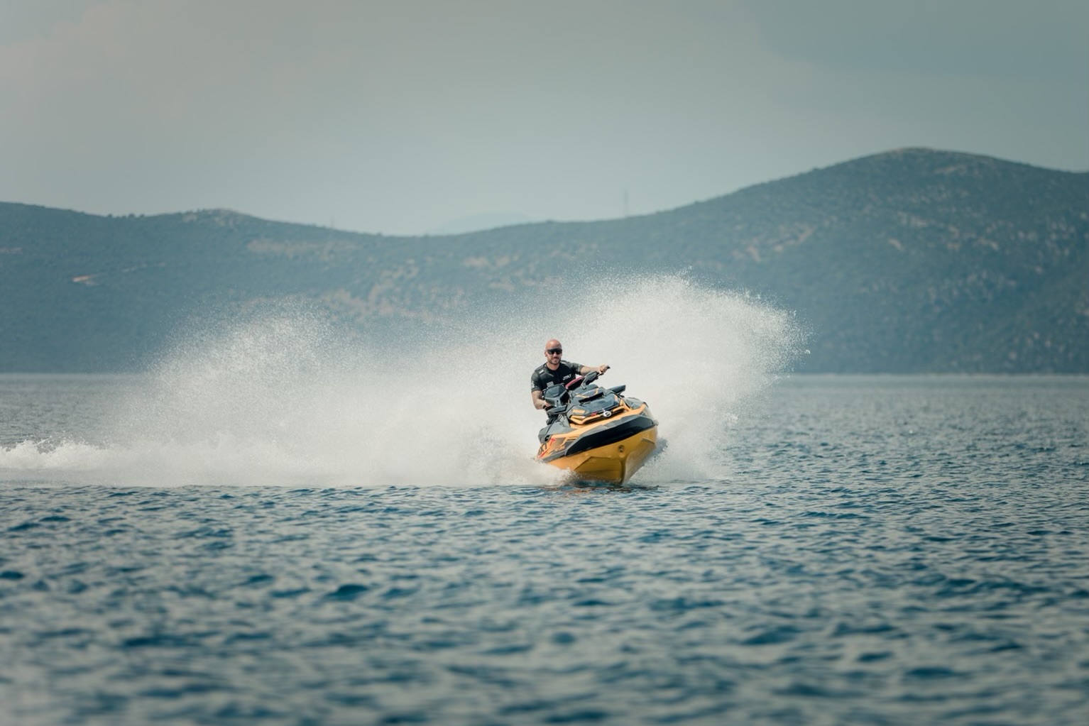 Εκτός από μπάνια, ηλιοθεραπεία και παιχνίδια στην άμμο, ο Άρης -που είναι λάτρης των θαλάσσιων σπορ- δεν σταματά τις θαλάσσιες βόλτες με το τζετ σκι του. Ο φωτογραφικός φακός τον απαθανάτισε καθώς «έσκιζε» τα κύματα, προκαλώντας τον θαυμασμό όλων των λουόμενων.