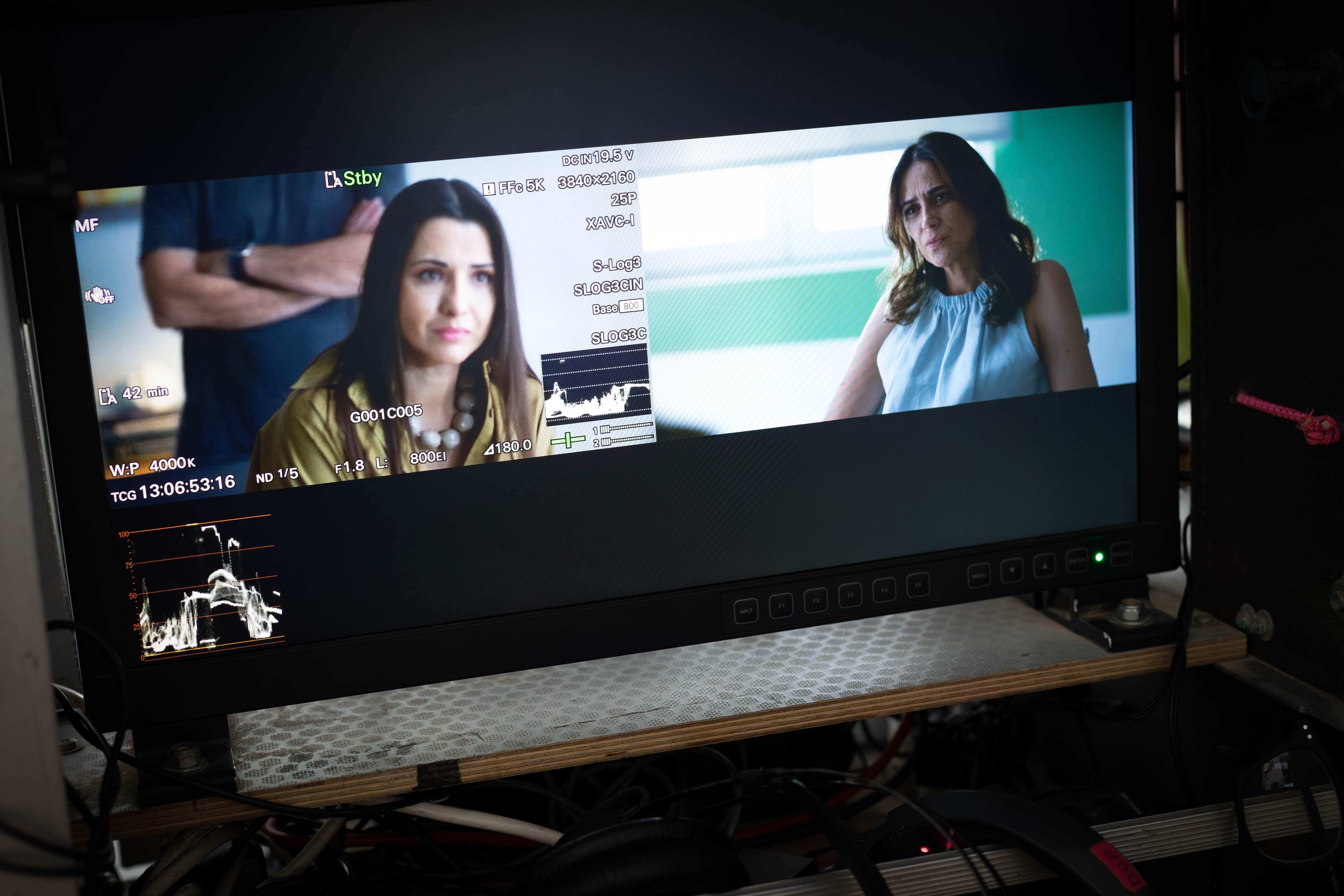 Το συνεργείο κάνει τον τελευταίο τεχνικό έλεγχο. Η κάμερα ανοίγει. Ο σκηνοθέτης δίνει τις οδηγίες. Οι ηθοποιοί προβάρουν τα λόγια και παίρνουν τις θέσεις τους.